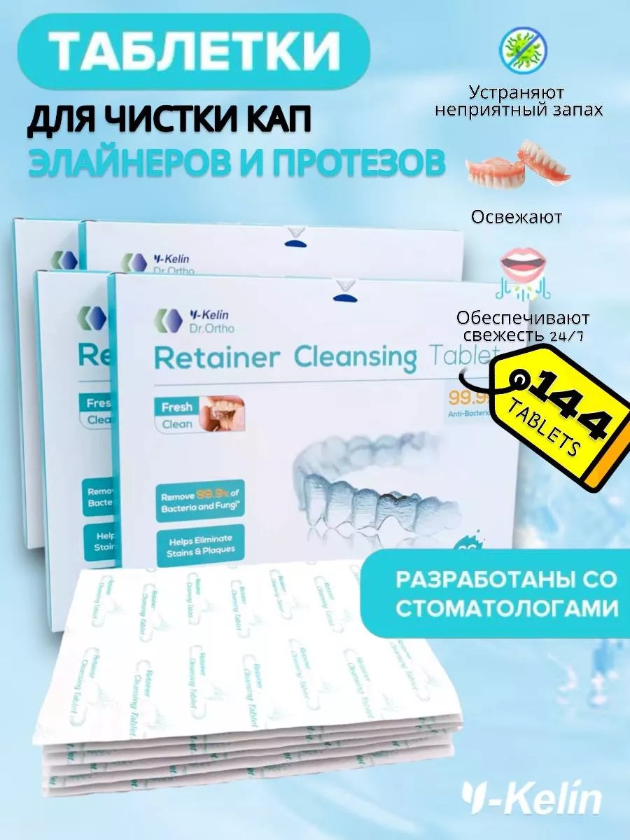 Beautiful and healthy teeth are what you strive for with orthodontic appliances. Your plastic plates, aligners, and other dentures will shine. Y-Kelin cleaning tablets will help you achieve this! This denture cleaning product has a comprehensive effect: it removes dirt and plaque, whitens, has an antibacterial effect, and adds freshness. It's your all-in-one assistant! This cleaner not only professionally achieves a mirror-like shine and transparency for your dental appliances, but also helps prevent and eliminate inflammation. Its tablet form allows for hassle-free use at home.