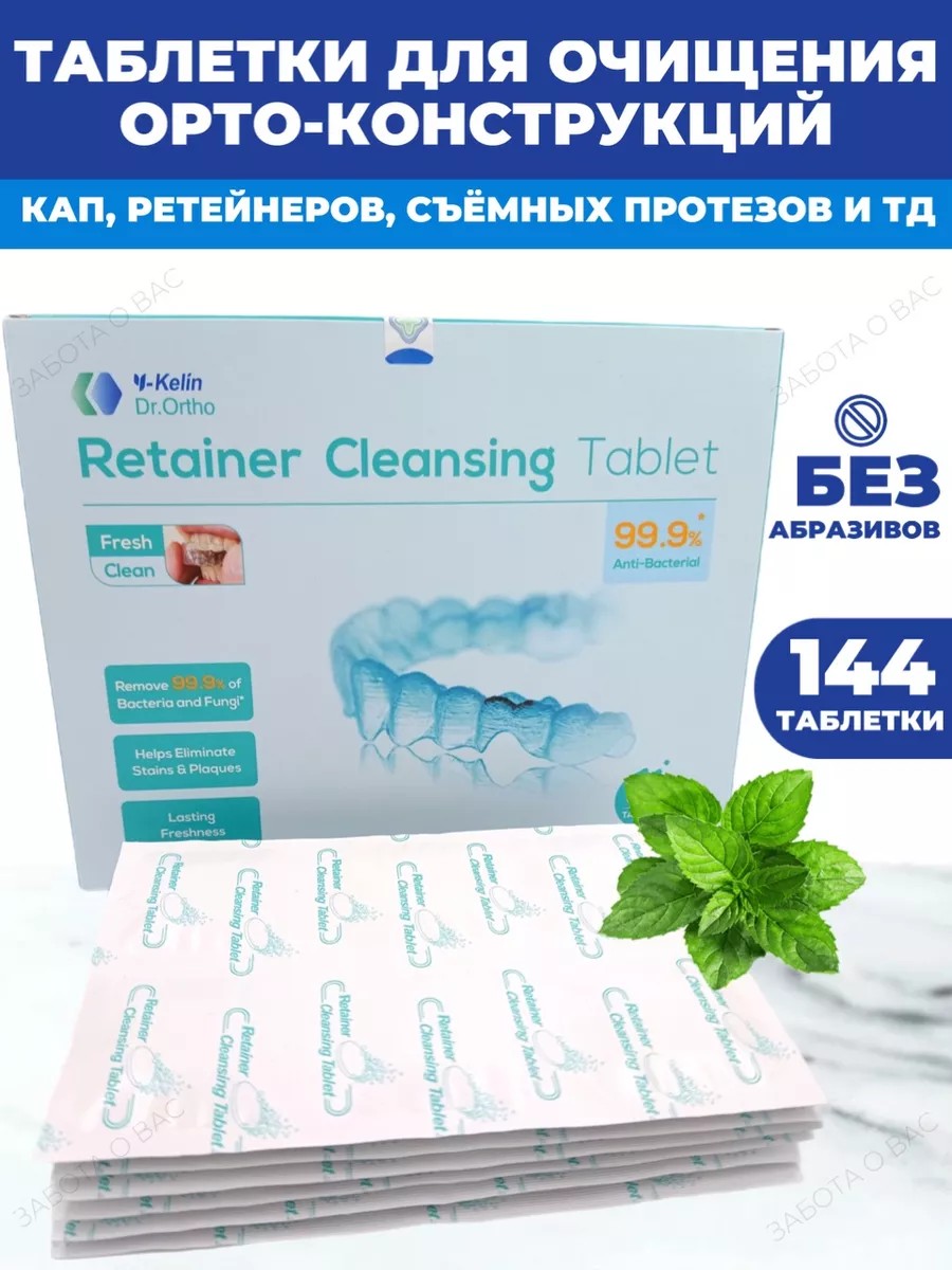 Красивые и здоровые зубы - то, к чему вы стремитесь, применяя ортодонтические конструкции. Ваши пластиковые пластинки, элайнеры и других вставные конструкции будут сиять. Таблетки для чистки Y-Kelin вам в этом отлично помогут ! Средство для чистки зубных протезов, действует комплексно: устраняет загрязнения и налёт, отбеливает, оказывает антибактериальный эффект, придаёт свежесть. Это ваш универсальный помощник! Очиститель не только профессионально добивается зеркального блеска и прозрачности дентал-конструкции, но и способствует профилактике, а также устранению воспаления. Таблетированная форма выпуска позволяет беспроблемно использовать его в бытовых условиях. В инструкции по применению разберутся даже малыши! Всего одна таблетка на стакан теплой воды, и активная жидкость от запаха изо рта, загрязнений зубных протезов готова. Вспомогательные инструменты - зубная паста и монопучковая зубная щётка, межзубные ершики. Производитель гарантирует сохранность скоб, сплинт- и ночных (для сна, от храпа), спортивных (боксерских) кап, благодаря использованию уникальной технологии Clear Мягкая формула. Никаких абразивов и агрессивных веществ в составе! Только лучшие ингредиенты: натрия пероксимоносульфат, натрия перкарбонат, масло мяты перечной, натрия лаурил сульфат, индиго, натрия бензоат, лимонная кислота и др. Ежедневное применение шипучих таблеток гарантирует глубокую очистку протезов. Шипучие таблетки для зубов подходят также для очищения всех видов ортодонтических аппаратов (кап, ретейнеров и т.п.).