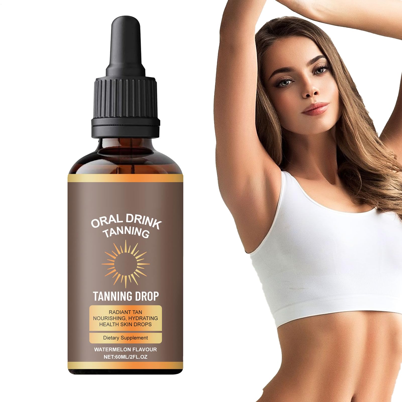 Enhance your natural radiance with oral drops suitable for all skin types. This beauty innovation works internally to boost volume and eliminate the need for sun exposure. Apply daily to the face and body for a balanced, effortless tan every day. Specification: Net Contents: 60 ml Contents: 1 Sunless Tan Drop Note: Due to lighting effects during photography and different monitor settings, the product colors in the image may differ slightly from the actual product. Please allow for a 1-2 cm difference in size due to manual measurement. SAFETY WARNING Not applicable