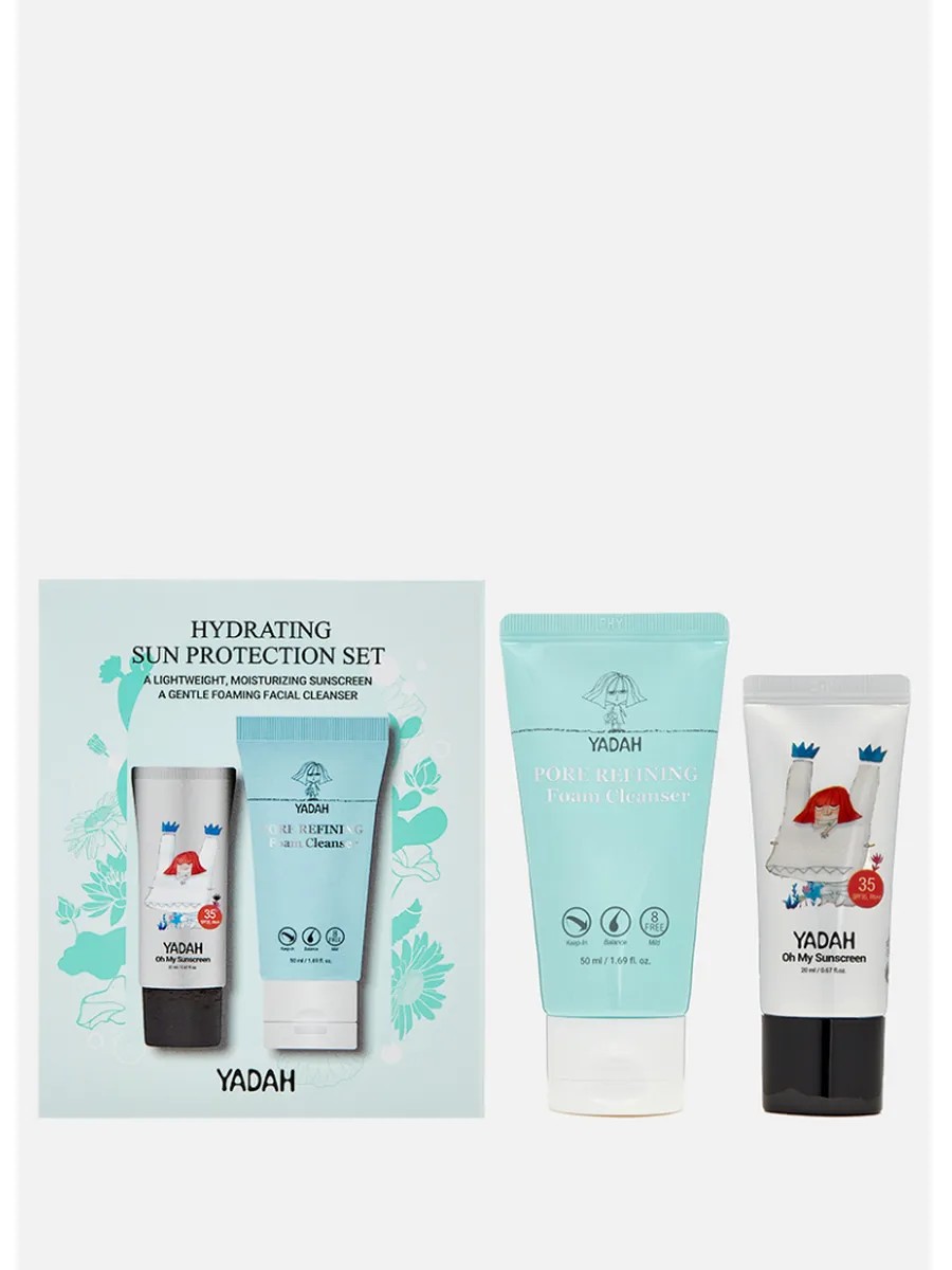 Универсальный и лаконичный уход за кожей от YADAH — правильное очищение и защита от УФ-лучей. В набор входят успокаивающий солнцезащитный крем Oh My Sun Screen SPF 35 PA++ (20 мл) и очищающая пенка для сужения пор PORE REFINING Foam Cleanser (50 мл) в мини-форматах.