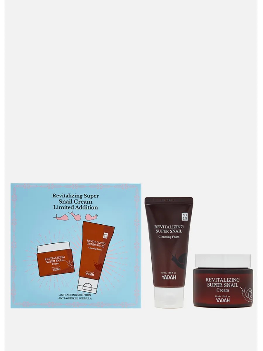 Restore your skin and give it a healthy glow with YADAH snail mucin-based care. This limited-edition set includes Revitalizing Super Snail Cream (80 ml) and Revitalizing Super Snail Cleansing Foam in a mini format (50 ml).