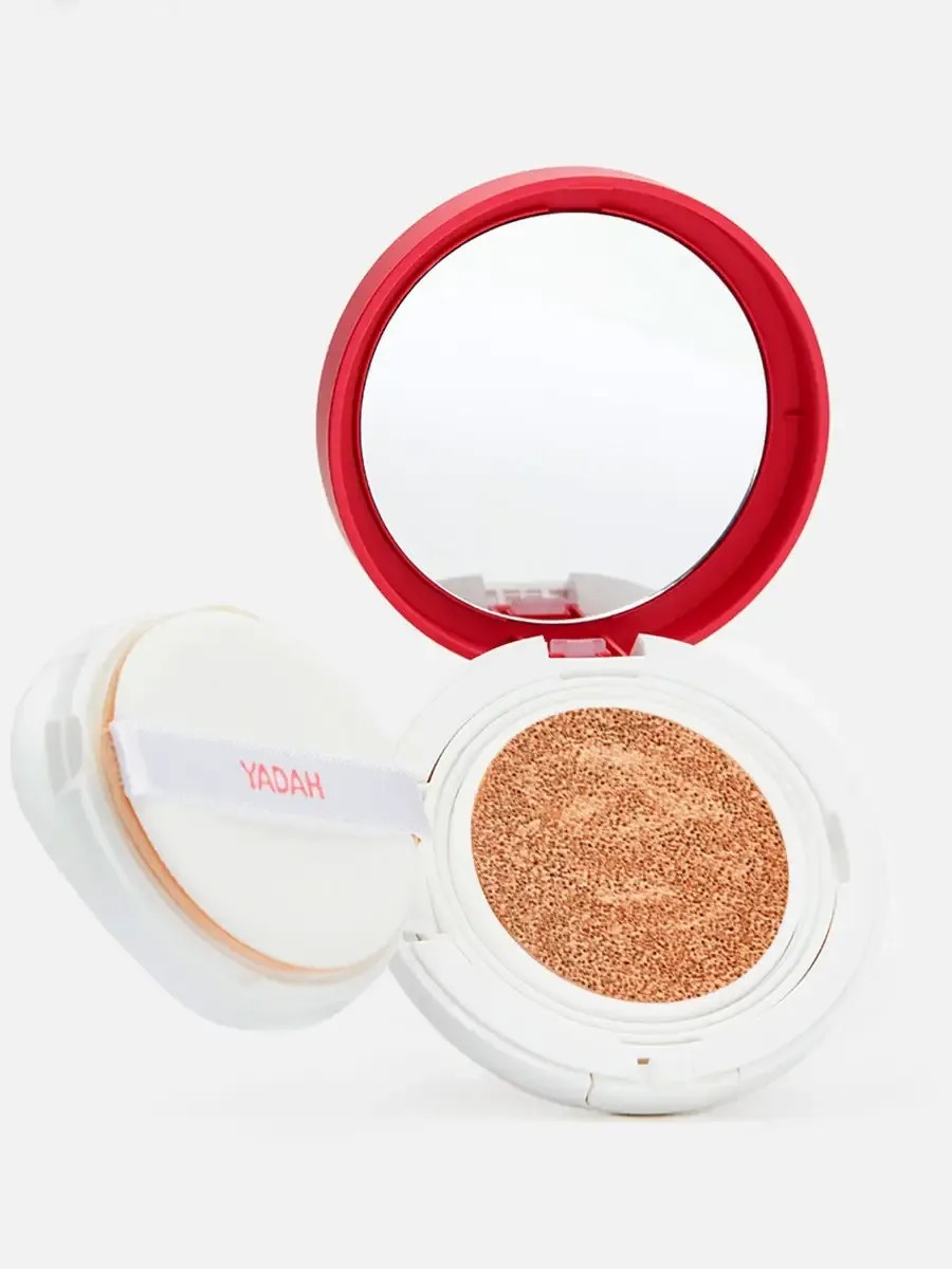 Тональное средство-кушон YADAH оказывает тройное действие: улучшает тон, защищает кожу от солнца и помогает уменьшить видимость морщин. Продукт создаёт ровное покрытие без эффекта маски и скрывает несовершенства. Для заботы о коже в состав средства входит комплекс растительных экстрактов, среди которых - экстракты лаванды и календулы. Они поддерживают уровень увлажнения, а ниацинамид способствует восстановлению кожи. YADAH - это косметический бренд из Южной Кореи, который предлагает гипоаллергенные средства для ухода за кожей и макияжа. Натуральность и безопасность продуктов в YADAH стоят на первом месте, поэтому в основе мягких, но эффективных формул - органические растительные ингредиенты, традиционные корейские травы, корни растений, фрукты, а также эфирные масла.