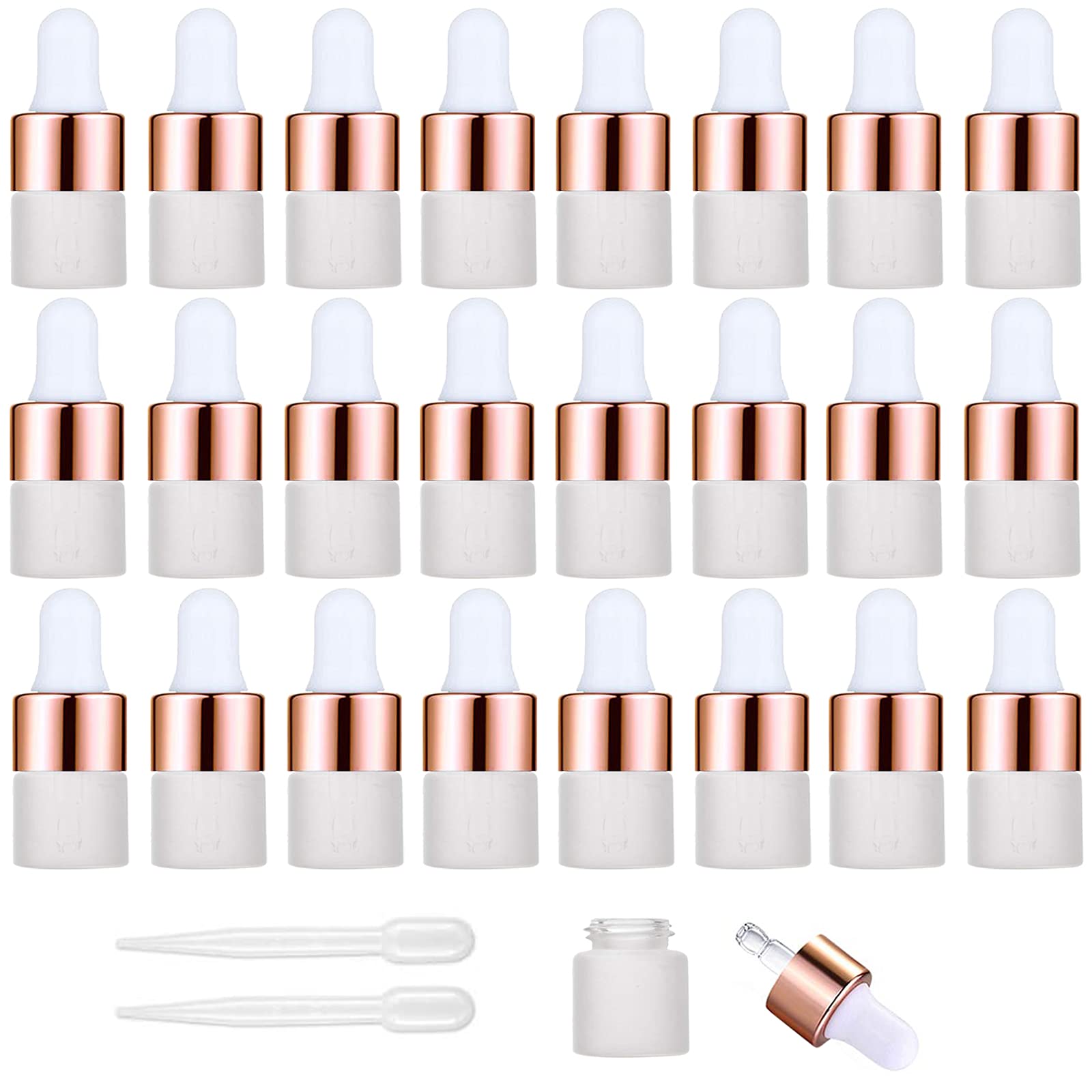 24Pcs Sample Dropper Bottles, 1Ml Frosted Glass Mini Dropper Bottles with Dropper Pipettes Rose Golden Aluminum Alloy Cap Refillable Sample Container, Includes 2Pcs Plastic Droppers for Traveling Essential Oils DIY Cosmetic Liquid Sample Perfume Specifications: Material: glass + rubber + aluminum alloy Capacity: 1ml Quantity: 24pcs Bottle color: frosted transparent Size: Approx 21mm x 16mm(Total Height x Diameter); Feature: Made of high quality frosted glass,not easy to breaking and scratching,with rose golden aluminum alloy cap the white rubber. Economical, convenient and refillable, easy to clean and sterilize, never effect on next use.Good sealing performance safety and quality standards. Mini size perfect for storing liquid samples. You can bottle some DIY material or essential oil as product samples giving to your customer. Small volume, easy to carry and conveniently fits in your purse or pocket, you can take oils wherever you go. Perfect for storing essential oil, perfume, fragrance, aromatherapy, liquid, essence, lotion, samples etc. Simple way of making handmade gift blends and your own fragrances for your friends and family! 0.5ml dropper help you reduce waste oils. Package includes: 24 x 1ml sample dropper bottles 2 x 0.5ml dropper? Value set - Package includes 24pcs mini empty dropper bottles and 2pcs 0.5ml dropper. Scroll down for more info. ? Widely use - Our empty sample containers are suitable for storing essential oils, chemistry lab chemicals, perfumes, fragrance oils, massage oils, aromatherapy, sample display, lab test and so on. ? Portable size - The capacity of the mini essential oil dropper bottle is 1ml ( 1 / 4 Dram ), which is suitable for containing liquid sample. You can bottle some DIY material or essential oil as product samples giving to your customer. The size of the sample dropper bottle is 21mm*16mm (H*D), which can be put in makeup bags, pocket, purse, handbag, backpack or suitcases easily. This eye dropper has a white rubber top and lets you precisely control each liquid drop, making it super practical. ? Good sealing performance & Visible design- Yalbdopo glass dropper seals tight to prevent any leakage. Don't be worry about your cosmetic or oils will spill out. Economical, convenient and refillable. Easy to clean and sterilize, never effect on next use. Frosted transparent design, you can identify what they are fill in. ? Premium quality- Yalbdopo glass sample dropper bottles are made of high quality frosted glass material, with rose golden aluminum alloy cap and white rubber, corrosion-resistant, anti-shock and durable. Coming with 24pcs in total, you can share your essential oils, perfume, or any kind of cosmetic liquid sample to your family, friends or customers. 0.5ml dropper help you reduce waste oils.