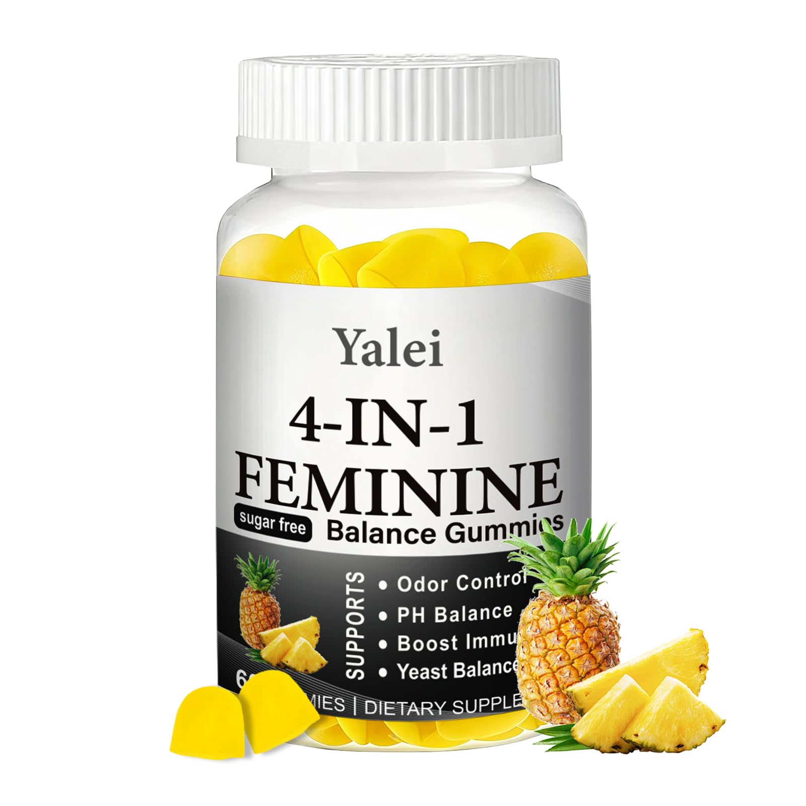 Yalei 4-in-1 Nuora Premium Feminine Balance Gummies & PH Balance Gummies for Women - Immune Support & Healthy Odor & Flora - Vegan Non-GMO - Hawaiian Pineapple 60 Count