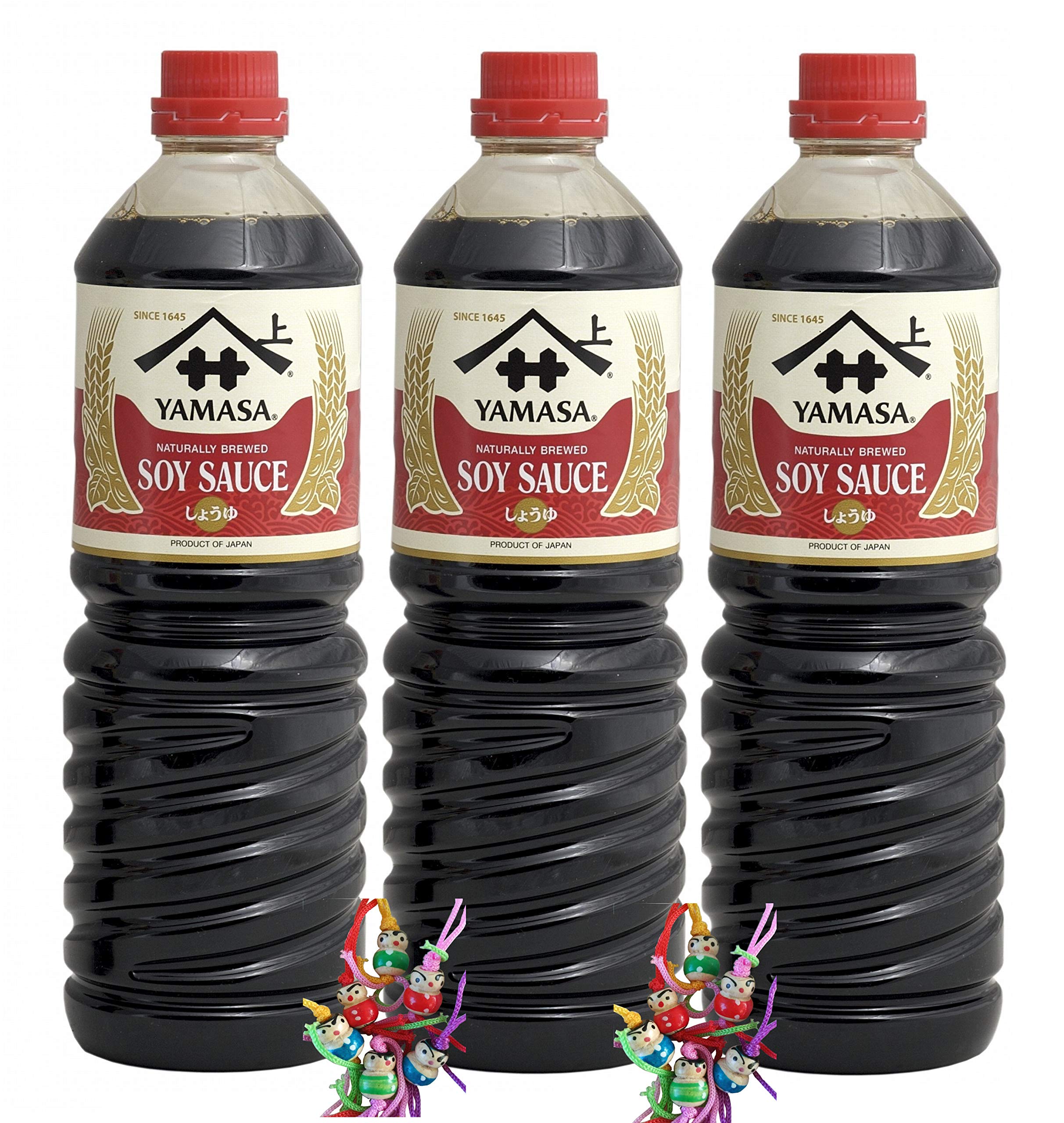 Yamasa 3 x 1000 ml YAMASA Soy Sauce from Japan / Naturally Brewed / Soy Sauce + a small lucky sink Wooden Doll