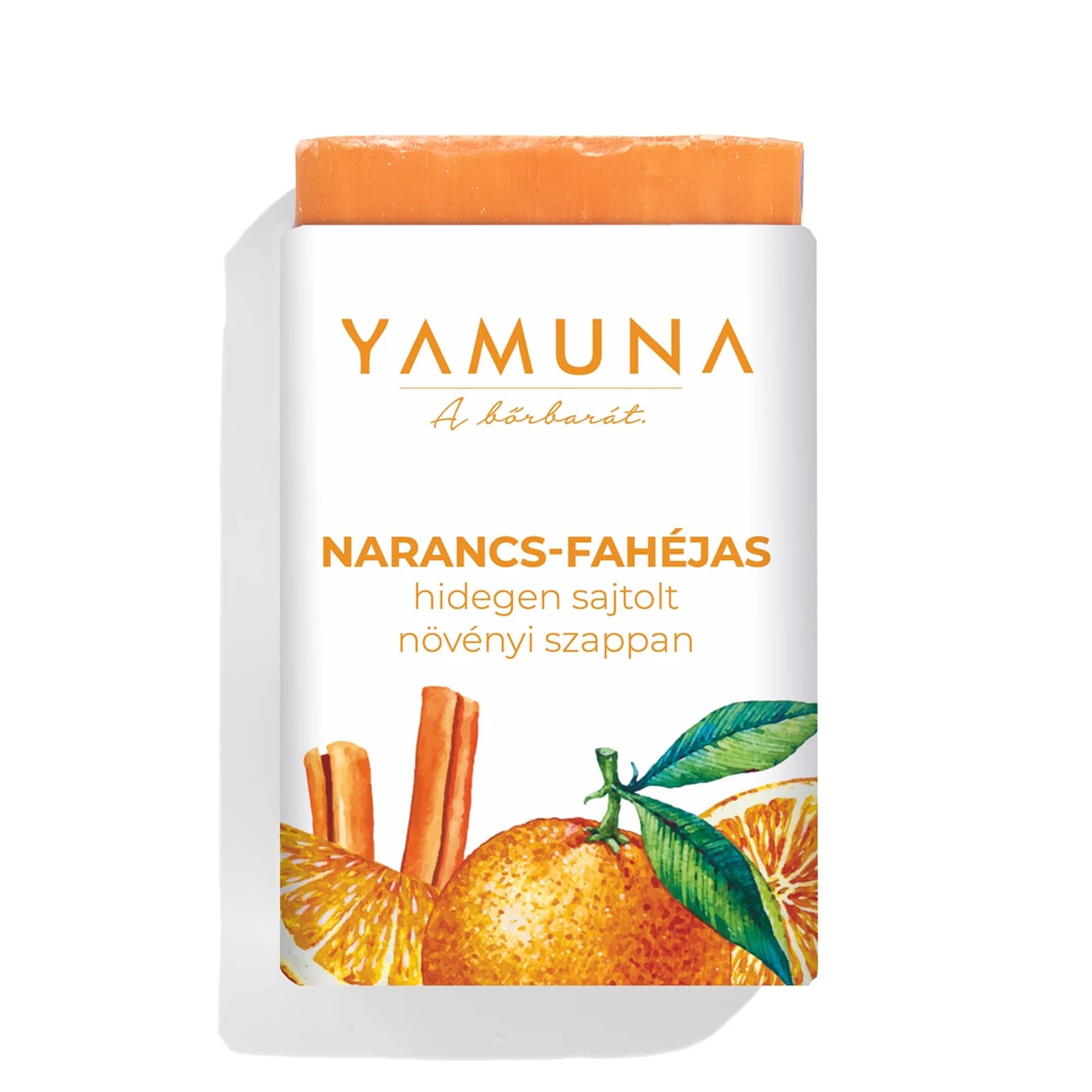 Yamuna Orange Cinnamon Soap - Natural and Cold-Pressed - Be captivated by the warm combination of orange and cinnamon fragrance. Our cold-pressed orange cinnamon soap provides a gentle yet thorough cleanse that won't dry out your skin. Its pleasant, spicy, and fruity scent ensures a relaxing and soothing shower experience. The natural formula nourishes your skin, leaving it soft and cared for. Cold-pressed formula - Preserves natural nutrients for effective skin care - Refreshing orange fragrance - Fruity and invigorating, ideal for starting the day - Spicy cinnamon scent - Warm and relaxing for an all-over feeling of comfort - Moisturizing and nourishing - Promotes skin balance and protects against leaks. Drying - Vegan and sustainable - Paraben-free, no artificial fragrance or dyes - Perfect for daily care - Enjoy natural freshness with Yamuna INGREDIENTS Sodium palmate, sodium palm kernel, water, fragrance, palm acid, sodium chloride, glycerin, palm kernel acid, tetrasodium EDTA, tetrasodium etidronate, CI 19140, CI 16255, limonene, cinnamal, linalool, eugenol SAFETY WARNING For external use only. Avoid contact with eyes and mouth. If product accidentally gets into eyes, rinse thoroughly with running water. Use only on clean, unbroken skin. Keep out of reach of children. Store in a cool, dry place away from light. See moreRefreshing orange scent – Fruity and invigorating for an energizing start to your day – Spicy cinnamon scent – Warm and relaxing for a soothing shower experience. Moisturizing: Nourishes and protects skin from dryness. Versatile use: Ideal for face, body, shower, and bath. 100 natural and vegan – Free from parabens, artificial fragrances, and dyes. Gentle on skin: Especially suitable for sensitive skin, free from harsh chemicals. ✓ Cold-pressed formula – Preserves precious nutrients for gentle skincare.Yamuna Savon à l'orange et à la cannelle, pressé à froid et naturel, parfum chaud, nettoyage et soin doux, hydratant, végétalien et durable, parfait pour tous les types de peau, 110 gDESCRIPTION DU PRODUIT DESCRIPTION DU PRODUIT Savon Yamuna à l'orange et à la cannelle - Naturel et pressé à froid - Laissez-vous envoûter par la combinaison chaude de parfum d'orange et de cannelle Notre savon pressé à froid orange cannelle offre un nettoyage doux mais en profondeur qui ne dessèche pas votre peau. Son parfum agréable, épicé et fruité assure une expérience de douche relaxante et apaisante. La formule naturelle nourrit votre peau et la laisse souple et soignée. Formule pressée à froid - Préserve les nutriments naturels pour un soin efficace de la peau - Parfum orange rafraîchissant - Fruité et tonifiant, idéal pour commencer la journée - Parfum épicé de cannelle - Chaud et relaxant pour une sensation de confort tout autour - Hydratant et nourrissant - Favorise l'équilibre de la peau et protège contre les fuites. Séchage - Végétalien et durable - Sans parabène, parfum artificiel ou colorant - Parfait pour les soins quotidiens - Profitez de la fraîcheur naturelle avec Yamuna INGRÉDIENTS Palmate de sodium, noyau de palme de sodium, eau, parfum, acide de palme, chlorure de sodium, glycérine, acide de noyau de palme, EDTA tétrasodium, tétrasodium étidronate, CI19140, CI16255, limonène, cinnamal, linalool, eugénol AVERTISSEMENT DE SÉCURITÉ Utilisable en extérieur. Veillez à ce qu'il ne pénètre pas dans les yeux ou la bouche. Si le produit pénètre accidentellement dans les yeux, rincez à l'eau courante. À utiliser uniquement sur une peau propre et intacte. Conserver hors de portée des enfants. Conserver dans un endroit sec, frais et à l'abri de la lumière Voir plusParfum d'orange rafraîchissant - Fruité et ravive les sens pour un départ énergique - Parfum épicé de cannelle - Chaud et relaxant pour une expérience de douche apaisante. Hydratant : nourrit et protège la peau du dessèchement. Utilisation polyvalente : idéal pour le visage, le corps, la douche et le bain. 100 naturel et végétalien – Sans paraben, parfums artificiels ni colorants. Doux pour la peau: particulièrement adapté aux peaux sensibles, sans produits chimiques agressifs. ✓ Formule pressée à froid – Préserve les nutriments précieux pour un soin doux de la peau.