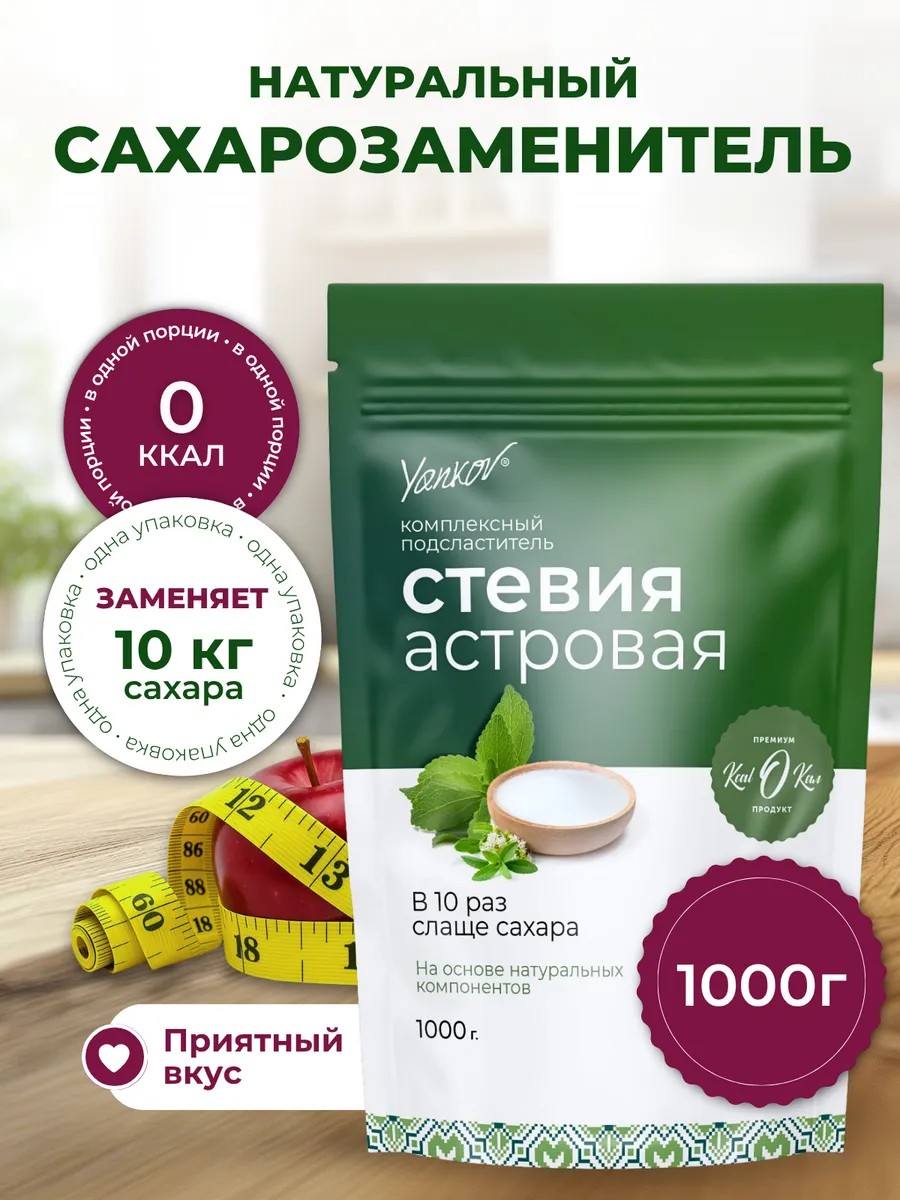 Стевия астровая - это натуральный сахарозаменитель (сахзам) в порошке. Заменитель сахара stevia без горечи и привкуса. Подсластитель незаменим для диабетиков 2 типа и похудения, на пп и кето диете. Порошок из натурального стевиозида 1000 г, сах зам эритрит без сахара - 0 калорий ккал.