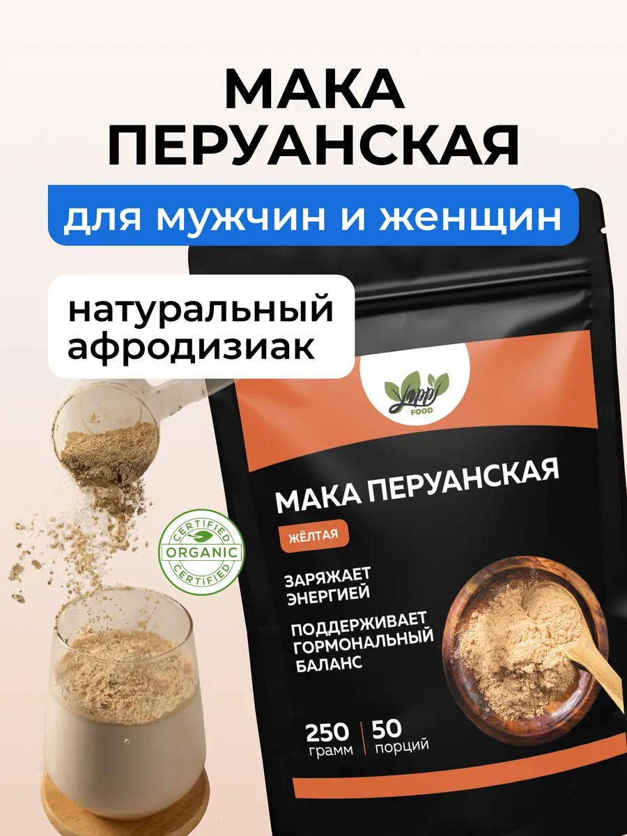 Мака перуанская порошок — природный энергетик и афродизиак для мужчин и для женщин. Жёлтая мака улучшает память, настроение, иммунитет и репродуктивное здоровье. Суперфуд для бодрости, выносливости и гормонального баланса. Включите маку перуанскую в рацион — и пусть забота о бодрости и гармонии станет вашей приятной привычкой.