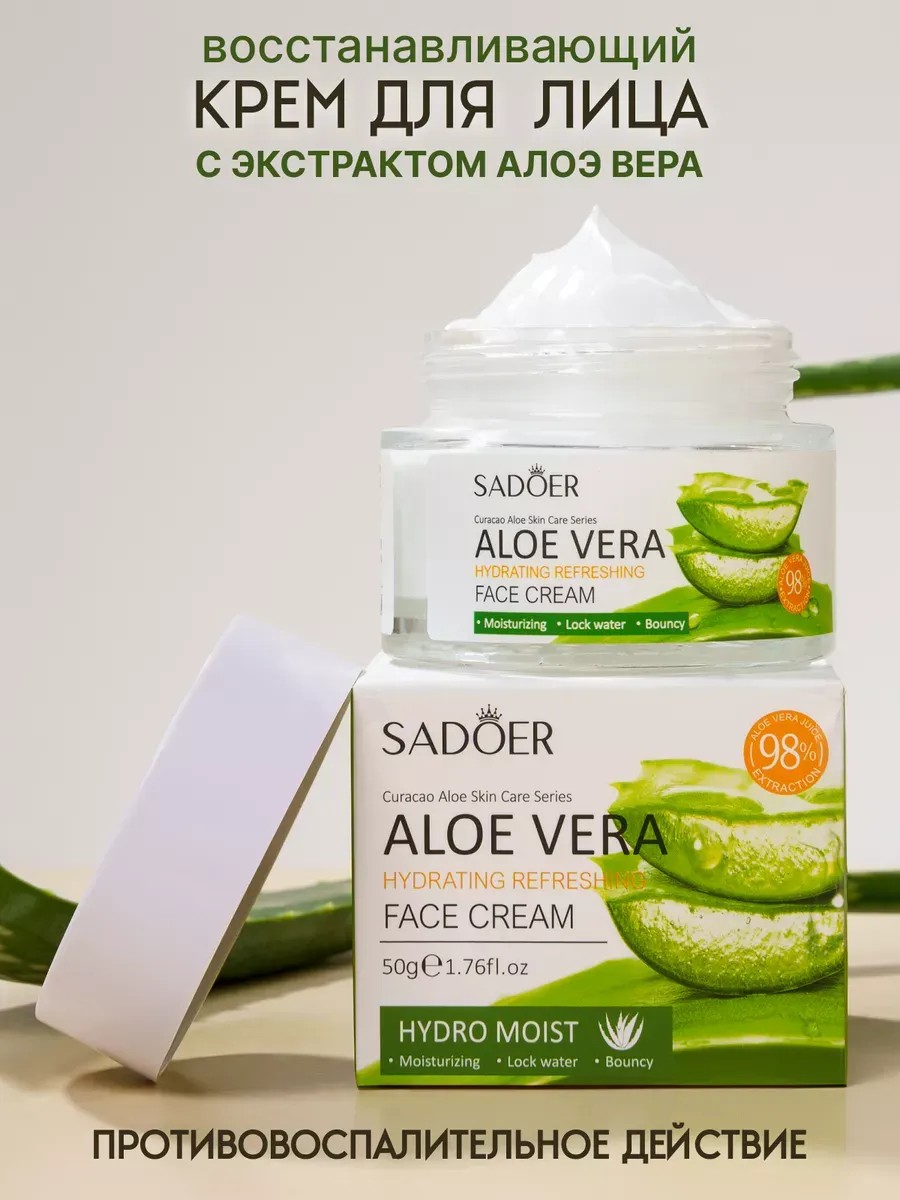 Универсальный крем для лица увлажняющий с алоэ вера обеспечит качественное увлажнение и восстановление липидного барьера кожи. Такой уход за лицом защитит кожу от обезвоживания и негативного влияния окружающей среды. Дневной крем для лица антивозрастной ничем не хуже корейской косметики и действует как витаминный коктейль для кожи, который глубоко увлажняет, быстро впитывается и не оставляет ощущения пленки на лице. Подарите своей коже уход, который вы заслуживаете. Зайдите на наш магазин бренда SADOER, где представленна огромный ассортимент уходовой и декоративной косметики и соберите свой идеальный косметический набор, который идеально подойдет в качестве подарка сестре, коллеге на людой праздник и просто так. Он крем для лица от морщин станет отличной «дышащей» основой для макияжа и подходит для кожи любого типа и всех возрастов. Мы объединили лучшие качества ингредиентов для длительного увлажнения и базового ухода за кожей любого типа. Витамин С сокращает процесс пигментации, осветляет постакне и мелкие несовершенства, заживляет воспаления и улучшает локальный иммунитет клеток кожи. Как эффективный антиоксидант, витамин С способен «захватывать» и нейтрализовывать свободные радикалы, которые разрушают коллаген, эластин и липидные волокна в клетках кожи, приводя к преждевременному старению. Дополнительную порцию антиоксидантов для красоты и молодости кожи добавляют экстракты апельсина, винограда и витамин Е. В увлажняющий крем для лица входит активные компонентов способствует разглаживанию рельефа крем для лица от морщин, повышается эластичность кожи, выравнивается тон лица, проходят признаки сухости, высыпаний и ранних морщинок. Используйте ночной крем для лица утром после очищения, тонизирования кожи и перед нанесением SPF-крема. Крем для лица дневной упакован в алюминиевую тубу — лёгким нажатием можно отрегулировать необходимое количество для экономичного расхода. Наносите на лицо, шею и зону декольте каждый раз, когда требуется увлажнение.