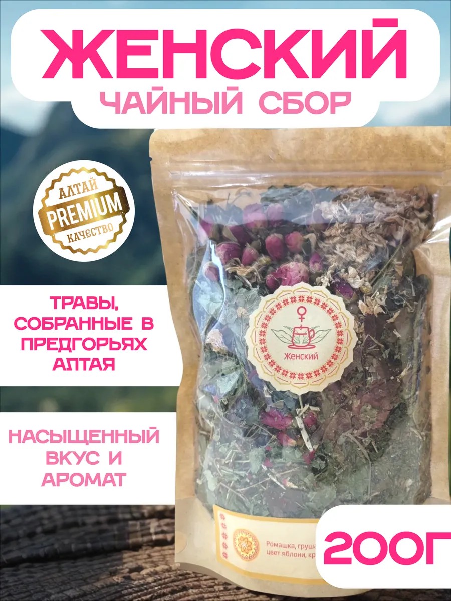 A series of herbal infusions made from mountain Altai herbs for brewing aromatic herbal tea. The "Women's" infusion includes chamomile, wintergreen, currant leaf, apple blossom, nettle, knotweed, orthilia secunda, and rosebud. The light, warming aroma and flavor of this herbal tea will appeal to the whole family. Brewing method: in a thermos or teapot, brew 2 tablespoons of the infusion per 1 liter of boiling water. Let it steep for 20-30 minutes.
