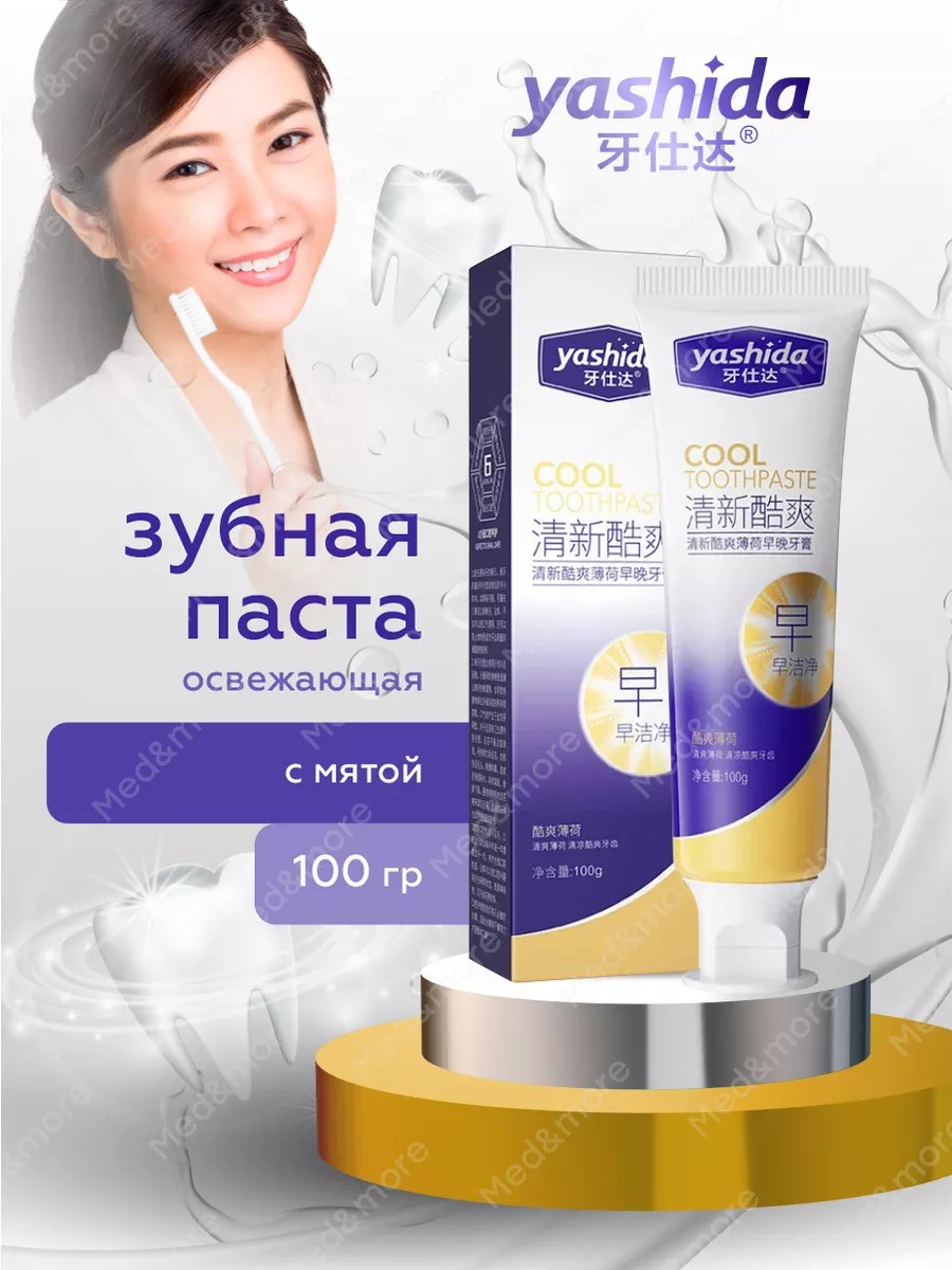 Yashida Mint Refreshing Toothpaste 100g. This mint-flavored toothpaste provides comprehensive oral protection—it's designed to maintain healthy teeth and gums, as well as fresh breath. Natural mint extract tones and nourishes gums, providing them with the necessary protection. It effectively removes pathogenic microflora in the oral cavity, maintaining its health. The aroma of fresh mint maintains a feeling of freshness for 24 hours from the moment of using the toothpaste. Does not distort taste perception. Suitable for daily use. Directions for use: Apply the required amount of toothpaste to the toothbrush. Brush your teeth up and down, from the inside out, while gently massaging your gums. Rinse your mouth with a small amount of water. It is recommended to brush your teeth twice a day: morning and evening, for at least 3 minutes.