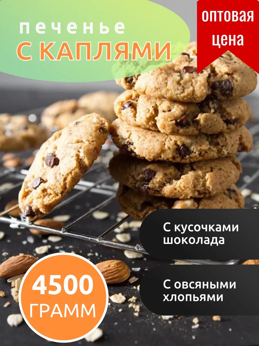 Печенье овсяное сдобное "С каплями" с шоколадом, 4500 грамм