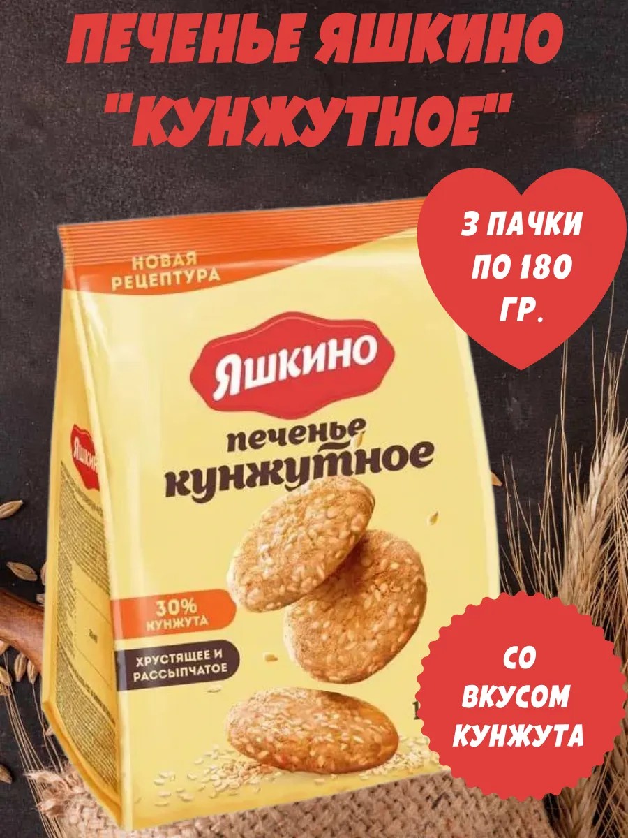 Яшкино Сладости Печенье "Яшкино" кунжутное, 3 пачки по 180 гр.