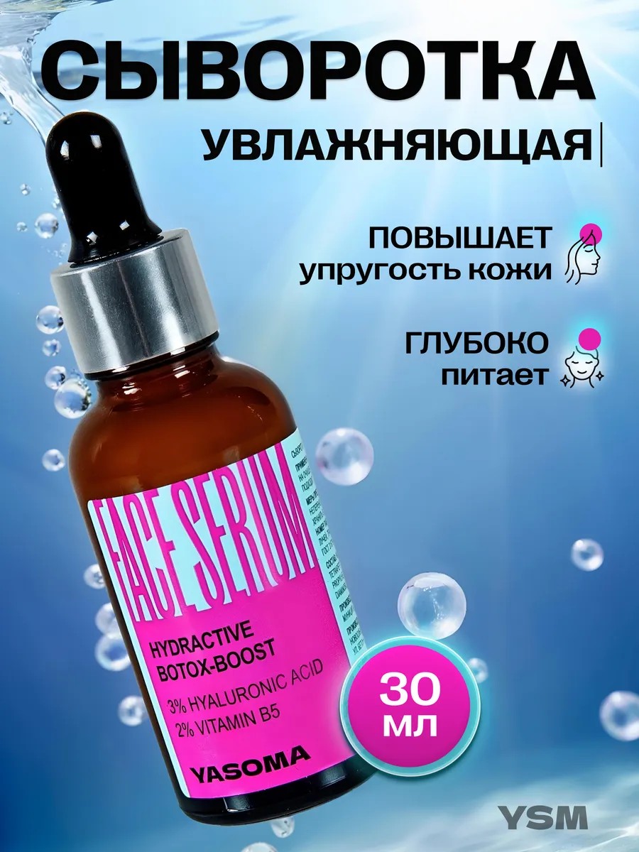 | Комплектация | Сыворотка для лица увлажняющая с гиалуроновой кислотой и витамином B5 YASOMA, 30 мл |