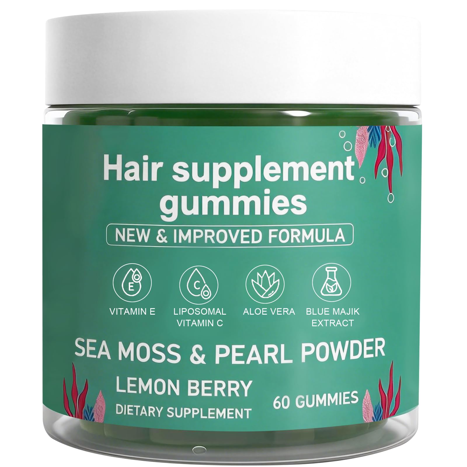Made for Everyone Designed for both women and men, our vegan, non-GMO, and gluten-free formula ensures you get high-quality, clean ingredients with no artificial additives. Enhances Skin Health Infused with aloe vera and pearl powder, these gummies promote radiant, glowing skin. Regular consumption helps reduce blemishes, improve skin elasticity, and maintain a youthful complexion. Powered by 5 Beauty-Focused Superfoods Each serving features a nutrient-rich blend including Sea Moss (for minerals), Biotin, Vitamin C, Zinc, and Pearl Powder—key nutrients that help hair look its best. This beauty-focused formula supports your daily routine with clean, simple nourishment. Delicious Tropical Gummies, Clean Easy to Take Skip the pills and enjoy your wellness routine. These vegan, non-GMO, and gluten-free tropical gummies make daily support simple and enjoyable. Just two gummies per day from our 60-count bottle fit seamlessly into your lifestyle. Sea Moss Gummies Harness the power of Sea Moss, Vitamin C, and Vitamin E. This essential nutrient blend works from within to deeply nourish hair follicles, promoting healthier hair while also supporting vibrant skin and stronger nails.