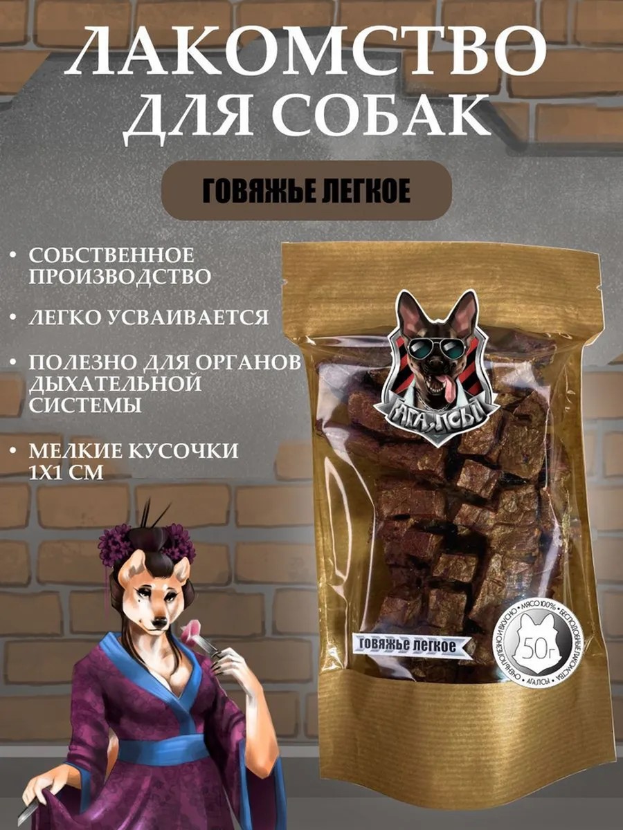 лакомство для собак говяжье лёгкое 50г (150-175 кусочков)