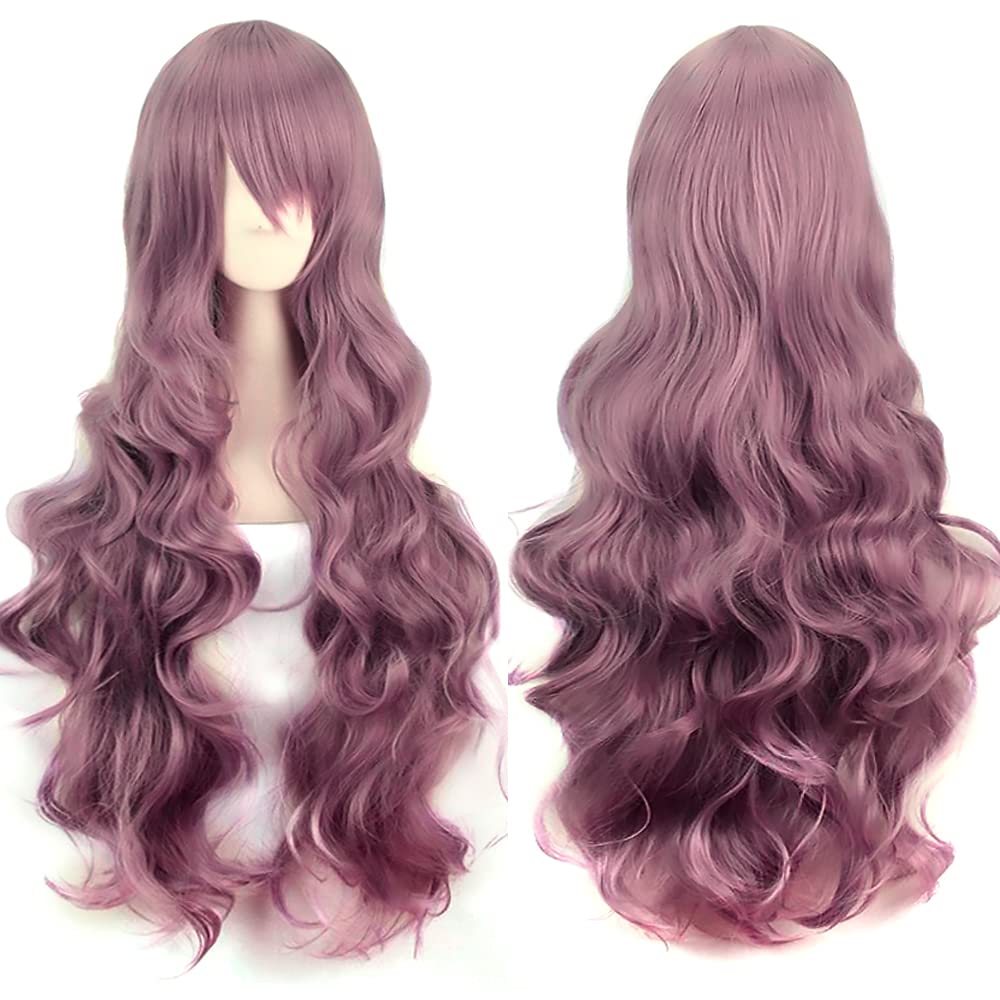 MapofBeauty 28" 70cm Long Curly Hair Ends Costume Cosplay Wig (Purple)
