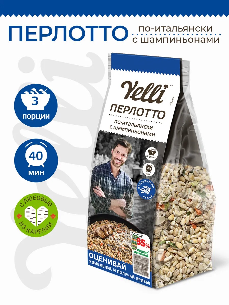 Perlotto is an Italian dish prepared like risotto, but with pearl barley instead of rice. Finely ground pearl barley, combined with select mushrooms, herbs, and spices, creates an incredibly tender and creamy dish. Try making perlotto with white wine and Parmesan! Yelli's Italian-style perlotto will immerse you in the unforgettable atmosphere of a sunny country, dazzling you with its multifaceted flavor and aroma. This recipe is simple and takes only 40 minutes. Pour 2 tablespoons of vegetable oil into a deep frying pan, add the contents of the package, and mix thoroughly. Then pour in 60 ml of dry white wine and let it absorb into the mixture. Then pour in 350 ml of water or broth and add salt. Gradually add the same amount of liquid as it is absorbed. Cook over medium heat for 30-35 minutes. Add grated Parmesan and let the dish steep, covered, for 5 minutes. Perlotto can be served as a side dish or on its own. This 100% natural, GMO-free, and salt-free product is suitable for vegans and vegetarians, and is the perfect complement to a balanced, healthy diet. It's the perfect choice for Lenten meals. It's made with pearl barley, dried mushrooms, and vegetables (carrots, garlic, and onions), along with aromatic green onions, ginger, and black pepper. This mushroom perlotto will certainly be appreciated by those who lead a healthy lifestyle and care about their weight. It's also a great gift. * Store in a dry place, away from direct sunlight. * Contains gluten and may contain traces of celery, soy, mustard, peanuts, sesame, nuts, milk and milk derivatives, and eggs and milk derivatives.