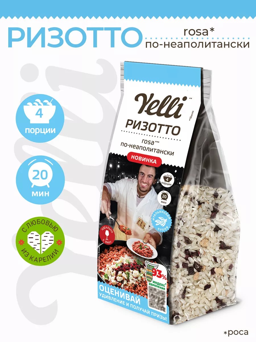 Ризотто Rosa по-неаполитански Yelli - это оригинальный рецепт традиционного ризотто, популярный в Болонье и Равенне. Нежная кремовая текстура, необычный розовый цвет в сочетании с превосходным вкусом, дополненным нотками базилика и сладкого яблока, делают это блюдо особенно изысканным и оригинальным. Содержимое пачки рассчитано на приготовление 4-х средних порций блюда. Для приготовления нужно в глубокой сковороде растопить сливочное масло, выложить ризотто, подогреть, помешивая, чтобы смесь пропиталась маслом. Налить 70 мл белого сухого вина и, перемешивая, дать ему испариться. Далее залить ризотто 400 мл бульона (воды) с добавлением лимонного сока, перемешать. Добавлять еще 350 мл бульона (воды) по мере впитывания, посолить, периодически помешивая содержимое сковороды. Готовить 15 минут на среднем огне. Рис должен быть почти готов, но в серединке оставаться немного твёрдым. Снять с огня, по желанию добавить сыр Пармезан, накрыть крышкой и дать постоять 5 минут. Рекомендуем подавать с зеленью, кедровыми орешками и сыром Горгонзола. Ризотто Yelli по достоинству оценят даже истинные гурманы. Продукт является 100% натуральным, не содержит ГМО и соли, подходит для вегетарианцев и веганов, а также тех, кто предпочитает сбалансированное правильное питание (ПП).