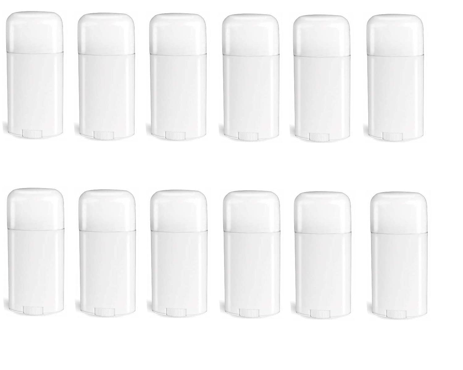 This 12-pack of empty deodorant containers with matching dome cap lids are perfect for those who like to make their own deodorants, heel balms, lotions, etc. The capacity for each container is 2.11oz/60g/60ml. Each container is 4-1/2 inches tall when placed standing. The turning wheel will evenly dispense the contents placed into the container. The container is White as pictured. The product is easily dispensed by turning the wheel at the bottom of the container