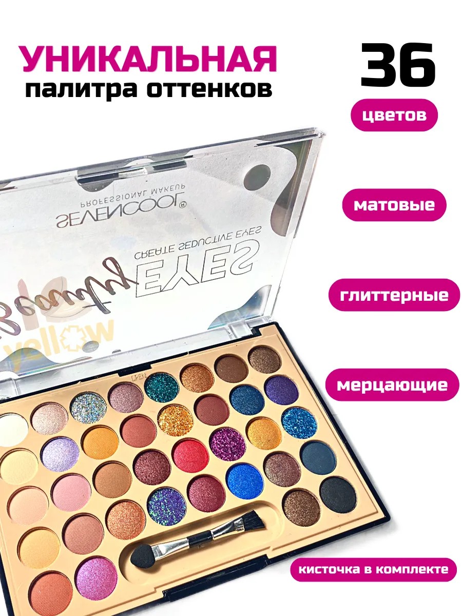 Для необычного makeup - яркие стойкие тени для век – важный элемент макияжа. Они помогут скорректировать форму глаз. Большая палетка теней для век из 36 цветов подойдёт для любого макияжа. Запеченные тени для глаз – наиболее распространенный вид. Аппликатор для нанесения уже в наборе! Яркая палитра обладает высокой пигментацией, текстура комфортно ложится, не осыпается, не забивается в складках века. Есть сияющие перламутровые мерцающие и блестящие оттенки. Компактные стойкие и пудровые. Шелковистые водостойкие и сатиновые.
