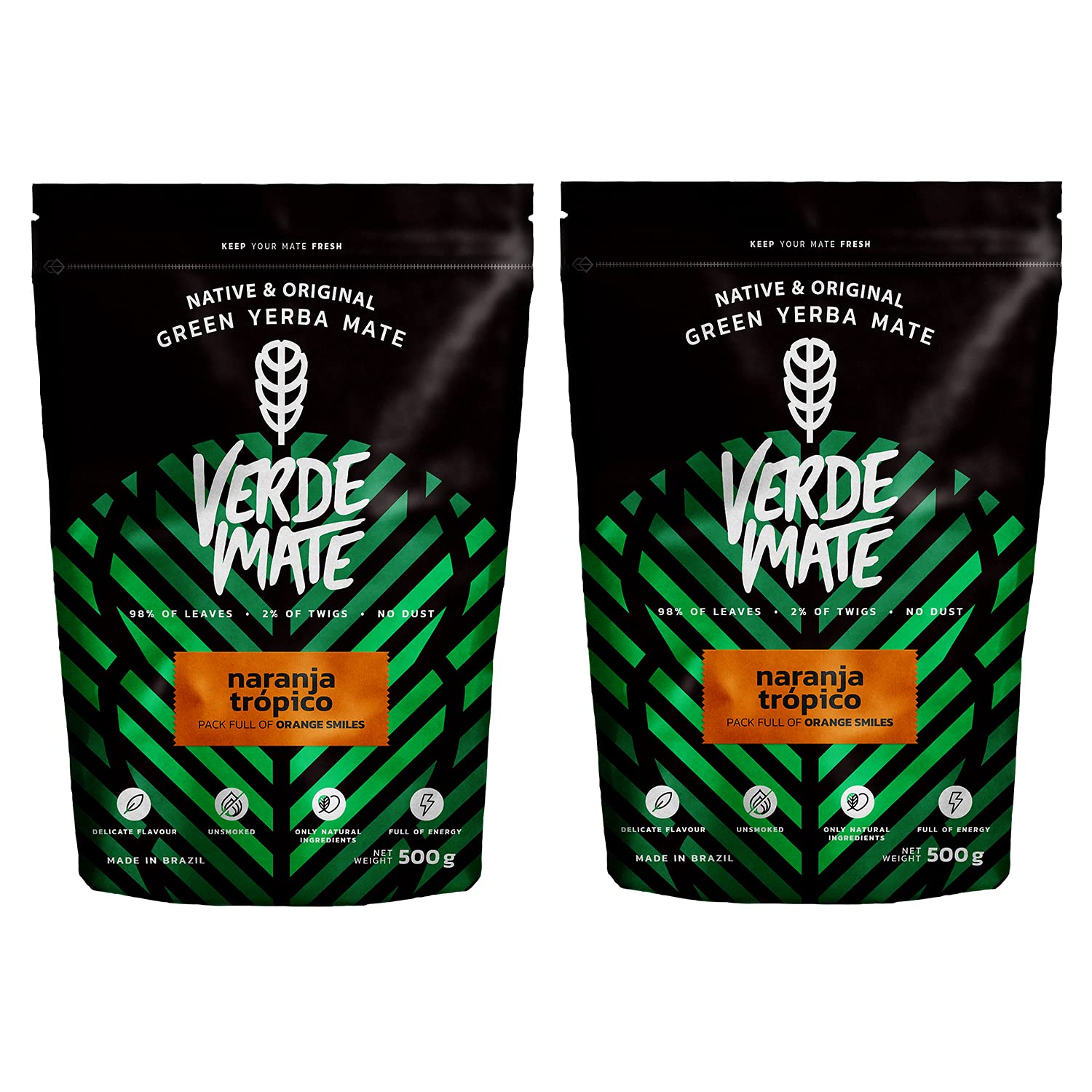 Yerba Mate Verde Mate Green Naranja Tropico | Verde Mat Vert Orange Tropicale | Yerba mate du Br sil |Haute qualit | Yerba mate aromatis e| Sans gluten | (1000g (2x500g))