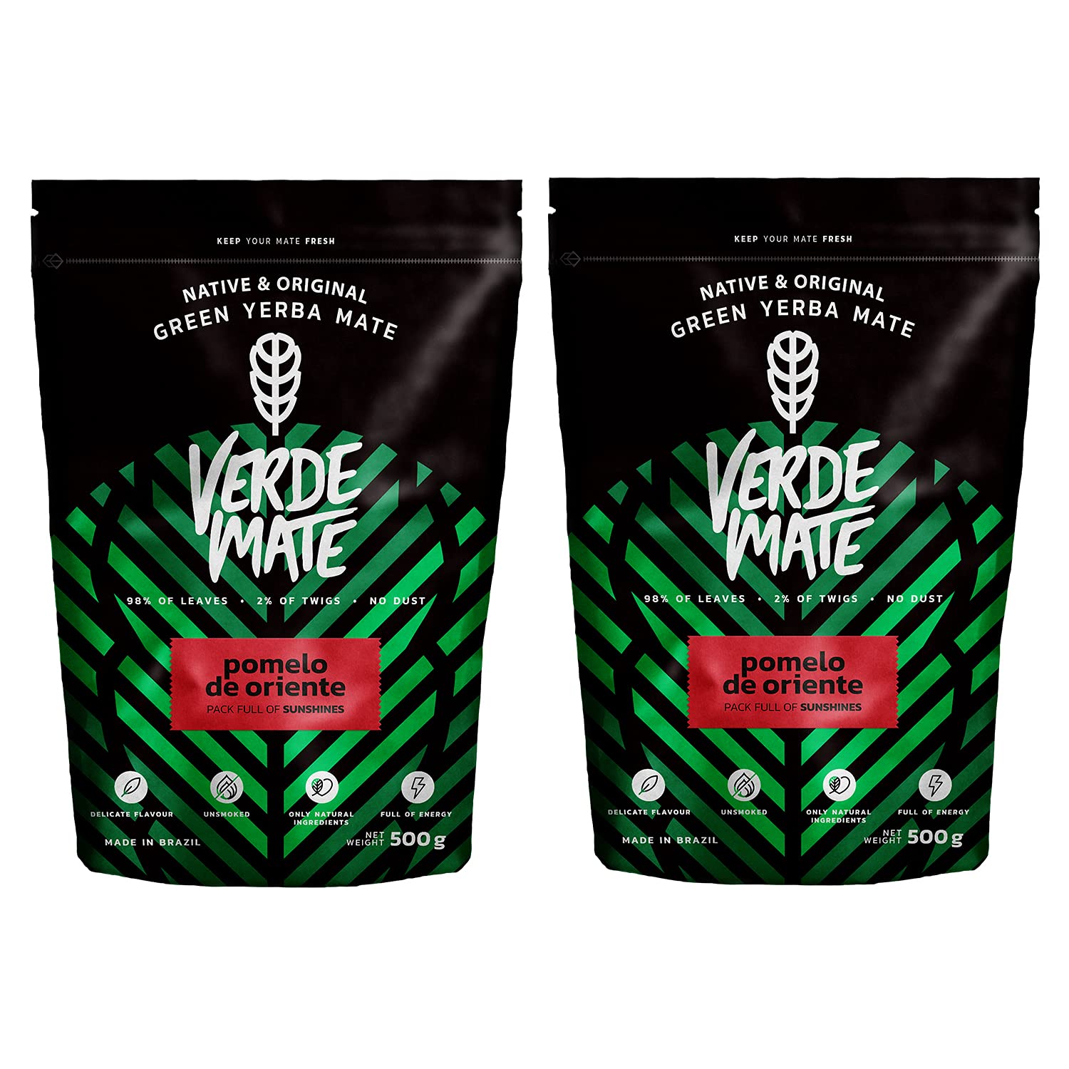 Yerba Mate Verde Mate Green Pomelo De Oriente, Verde Maté Vert Pamplemousse L'orient, Yerba Mate du Brésil, Yerba mate fruitée, Sans gluten, non pas séchée par fumée (1000g (2x500g))
