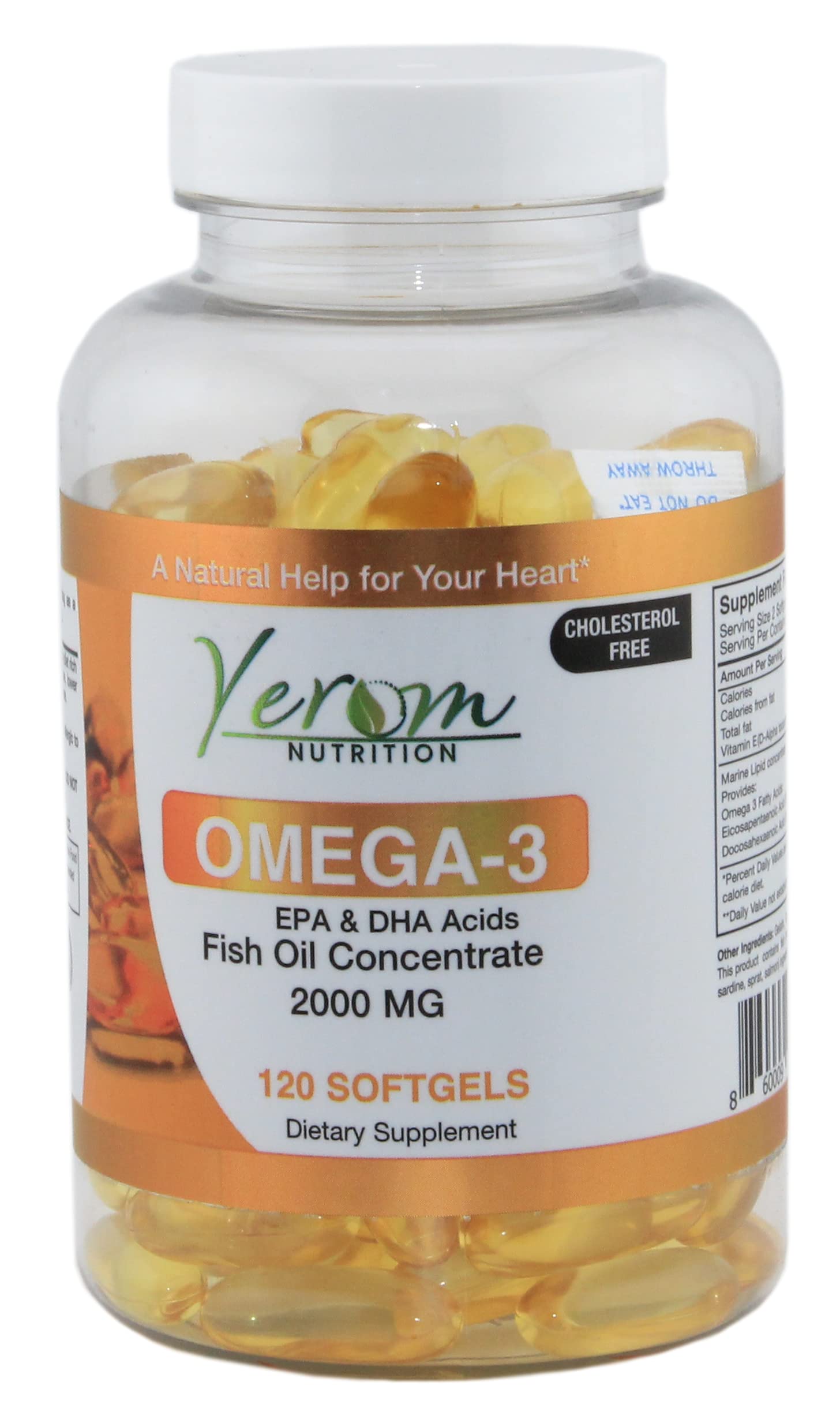 Yerom Nutrition Omega 3 Fish Oil - High-Potency EPA & DHA Supports Heart Brain & Joint Health 120 Softgels.