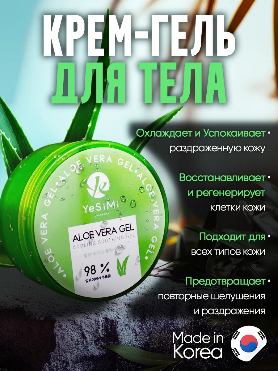 Крем гель проникает в самые глубокие слои эпидермиса, мгновенно восстанавливая водный баланс и даря ощущение свежести. Благодаря уникальным свойствам алоэ вера, ваша кожа станет более упругой и здоровой, применяйте его после долгого пребывания на солнце, чтобы избежать неприятных ощущений от солнечных ожогов. Это настоящий эликсир молодости из Кореи, который наполняет жизненной силой и защищает от неблагоприятных внешних факторов.
