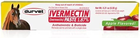 Removes worms and bots with a single dose Ivermectin Equine Paste 1.87% For oral use in horses only. Apple Flavored Ivermectin Equine Paste 1.87-percent For oral use in horses only