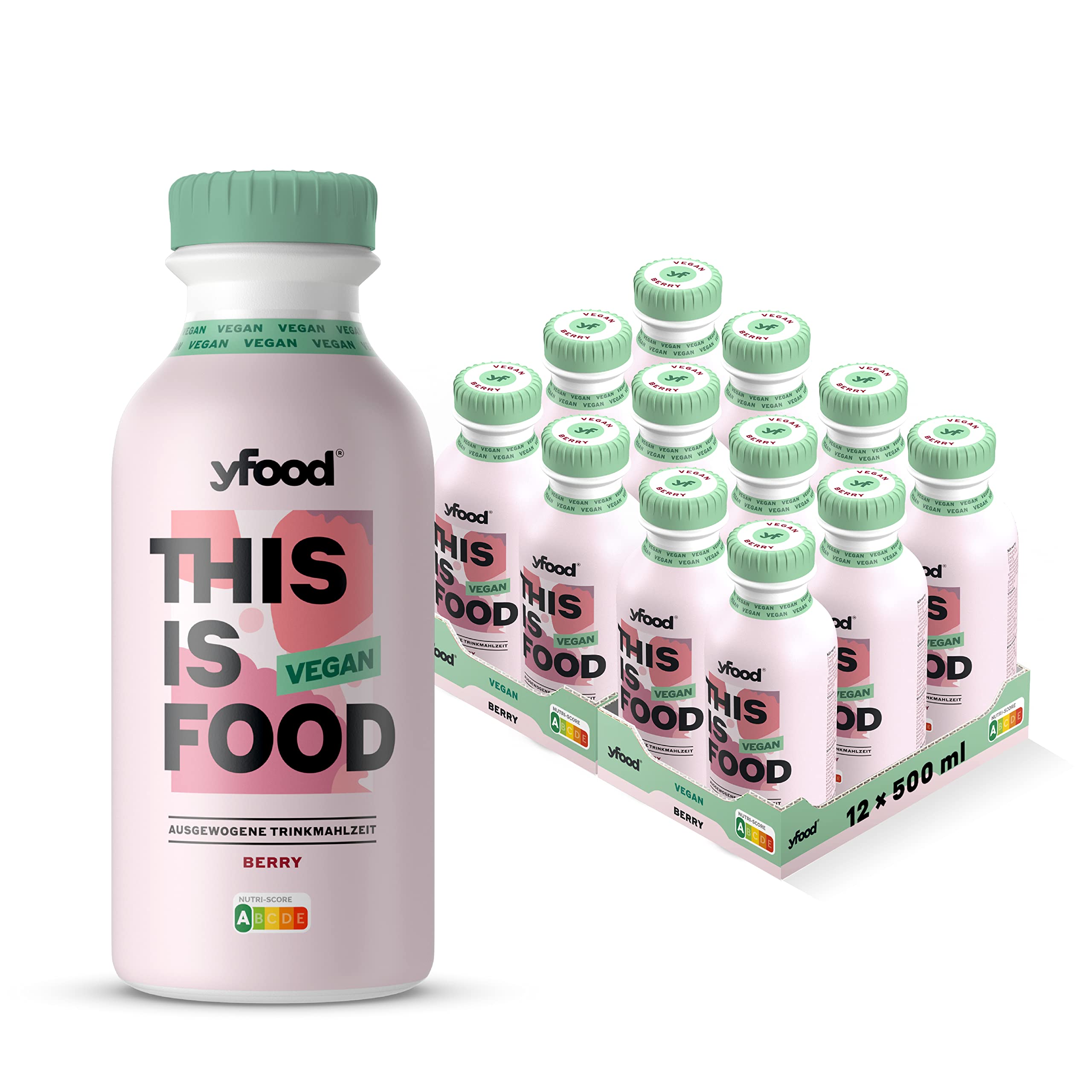 yfood Drink Vegan Berry, Leckere, vegane Trinkmahlzeit für unterwegs, THIS IS FOOD Drink, 26g Protein, 26 Vitamine und Mineralstoffe, 3,00€ Pfand inkl., 12 x 500ml, Geschmack Beere Berry 500 ml (12er Pack)