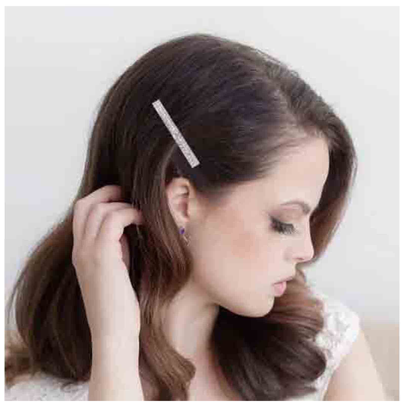 Yheakne Boho Crystal Hair Clip Pen Silver CZ Bar Hair Clip Barrette Vintage Hair Clip Pins Decorative Hair Clip Rhinestone Bar Hair Clip Shiny Bridal Hair Accessories for Women and Girls (Silver B)