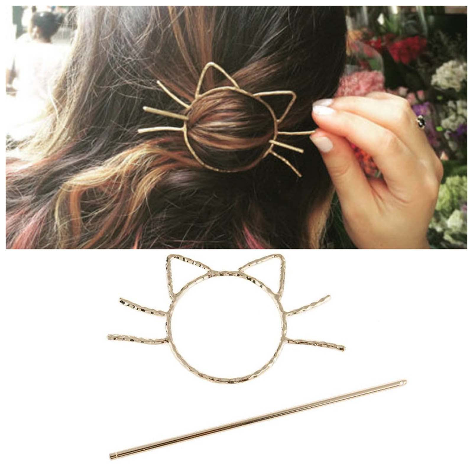 Yheakne Metal Hair Clip Cat Shape Hair Pin Vintage Hair Fork Bun Holder Alloy Hair Clip Decorative Hair Accessories for Women and Girls (Silver)