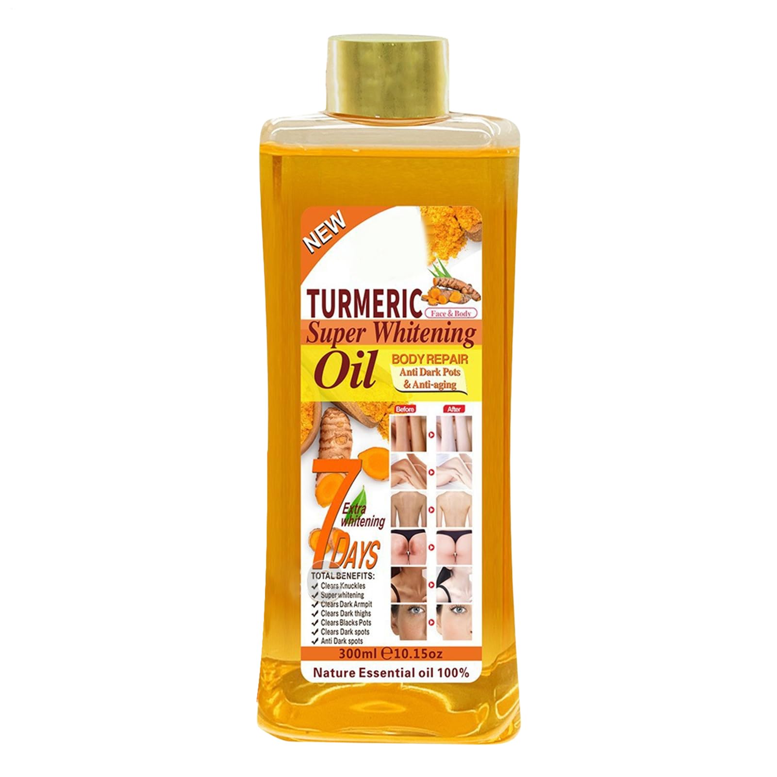 Our turmeric skin treatment provides deep hydration while improving skin radiance and boosting confidence. Its fast-absorbing formula is suitable for most people seeking younger-looking skin. Features: Name: Turmeric Capacity: 300 ml Product List: 1 Turmeric Notes: Due to lighting and individual monitor settings, the item's color may differ slightly from the picture. Please allow for a 1-3 cm difference in size due to manual measurement. SAFETY WARNING Do not applyNaturally: Packed with the richness of turmeric, this turmeric is a natural and effective way to brighten your skin, leaving it healthy, glowing, and radiant while reducing blemishes and dark spots for a revitalized look and feel. Skin Nourishment and Protection: Enriched with natural ingredients, this turmeric deeply nourishes and protects the skin. Suitable for most skin types, including oily and sensitive, it's sufficient for daily use. Discover healthy, glowing skin with this versatile product. Easy to Use: Starting with a simple method, apply an appropriate amount after cleansing, ensuring absorption, and massage thoroughly to revitalize your skin. Naturally Radiant Glow: This turmeric gradually improves the skin, not only reducing dark spots but also increg luminosity and social confidence over time. Revitalizing Radiant Skin: Using the power of turmeric, this skin brightener effectively nourishes and hydrates the skin, leaving it healthier and more radiant. Infused with natural properties, this turmeric deeply hydrates your skin, leaving it delicate and deeply moisturized.Curcuma Hydratant pour la peau 300 ml peau sèche profondément hydratante illuminateur visage et corps 300 ml 1 unidad (Paquete de 1)DESCRIPTION DU PRODUIT DESCRIPTION DU PRODUIT Notre curcuma pour la peau procure une hydratation profonde tout en améliorant l'éclat de la peau et la confiance sociale. Celui-ci, à absorption rapide, convient à la plupart des groupes qui recherchent une peau plus jeune et plus jeune. Caractéristiques : Nom : curcuma. Capacité : 300 ml. Liste des produits : 1 curcuma. Remarques : En raison de l'éclairage et des paramètres propres à chaque écran, la couleur de l'article peut légèrement différer de celle de la photo. Les mesures étant prises à la main, les tailles indiquées peuvent varier de 1 à 3 cm. AVERTISSEMENT DE SÉCURITÉ Ne pas appliquerNaturellement : regorgeant de la richesse du curcuma, ce curcuma est un moyen naturel et efficace d'éclaircir votre peau, la laissant saine, brillante et radieuse tout en réduisant les imperfections et les taches brunes pour une apparence et une sensation revitalisées. Nutrition et protection de la peau : enrichi en ingrédients naturels, ce curcuma nourrit et protège en profondeur la peau. Convient à la plupart des groupes, y compris les peaux grasses et sensibles, il est suffisant pour un usage quotidien. Découvrez une peau saine et éclatante avec ce polyvalent. Facile à utiliser : en commençant par une méthode simple, appliquez une quantité appropriée après le nettoyage, en assurant l'absorption et massez soigneusement pour revitaliser votre peau. Brillance radieuse naturellement : ce curcuma améliore progressivement la peau, non seulement réduit les taches noires, mais augmente également la luminosité et la confiance sociale au fil du temps. Revitalisant la peau éclatante : en utilisant le pouvoir du curcuma, cet éclaircissant pour la peau nourrit et hydrate efficacement la peau, la laissant plus saine et plus radieuse. Imbué de propriétés naturelles, ce curcuma hydrate profondément votre peau, la rendant délicate et profondément hydratée.