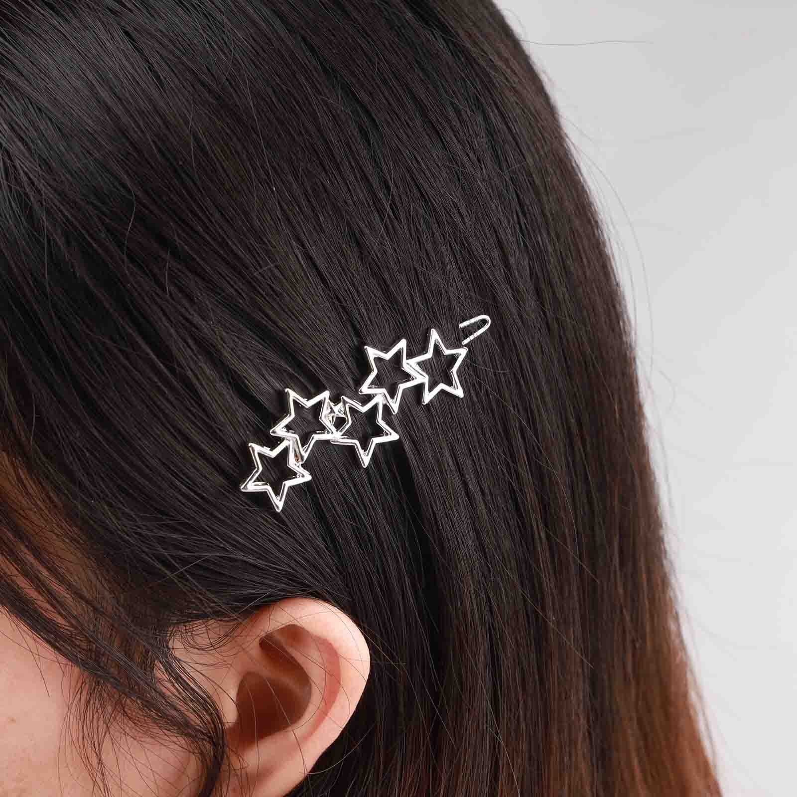 About our store We focus on providing customers with exquisite, cute, simple and diverse jewelry, 100% customer satisfaction is our pursuit. Product Specifications Color: Silver Packaging: One Star hair clips Features: Star hair clips are versatile, no matter the season, you can choose any style you like with other accessories. Warm Tips 1. Avoid using chemicals. 2. Avoid bathing. 3. Avoid collisions. 4. Avoid friction. 5. Avoid moisture. 6. Wipe with a soft cloth. 7. Save it well. If there are any problems after receiving the product, please contact us in time and keep the RETURN & CHANGE label. Please feel free to contact us and we will reply within 24 hours.