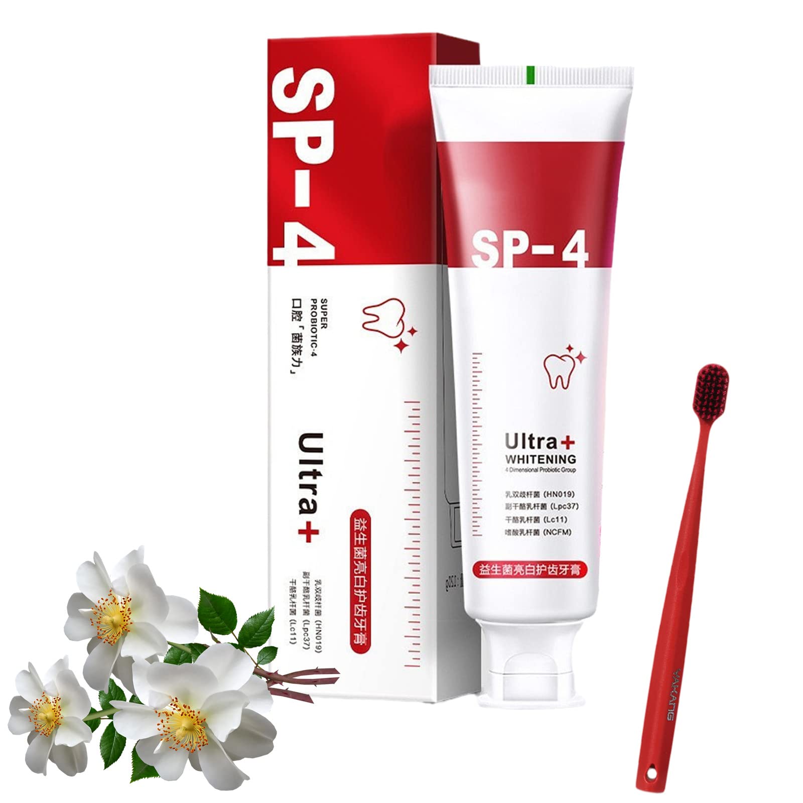 Introducing Yiliku sp-4 Probiotic Toothpaste! Our toothpaste has been specially formulated to help you achieve a brighter smile by effectively removing stains. Here are some of the key features of our product: Refreshing Breath: With Yiliku sp-4 Probiotic Toothpaste, you'll enjoy fresher breath and a mouth that feels moist and fragrant. Teeth Whitener: Our Yiliku sp-4 Probiotic Toothpaste has been designed to whiten teeth, helping you to achieve a brighter, more confident smile. Gentle on Gums: Yiliku sp-4 Probiotic Toothpaste is gentle on your gums, helping to promote overall oral health while protecting your gums. Product Details: Product Name: Yiliku sp-4 Probiotic Toothpaste Size: 120g per tube Shelf Life: 3 years Suitable for: women, men, and children. Package Includes: 1/2/3pcs Yiliku sp-4 Probiotic Toothpaste + 1 toothbrush Warm Tip: 1.Please allow 1-2cm differs due to manual measurement. 2.Due to the lighting effects and shooting angles, the color of the item and that shown in the picture might have a nuance. Try Yiliku sp-4 Probiotic Toothpaste today and experience the benefits for yourself!