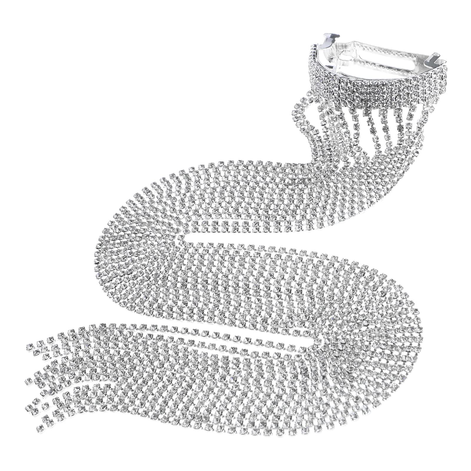 YINETTECH Long Chain Tassel Hair Clip Shiny Rhinestone Tassel Barrette Fashion Hairpin Headdress Ponytail Hair Accessories for Girls Women Silver 39cm