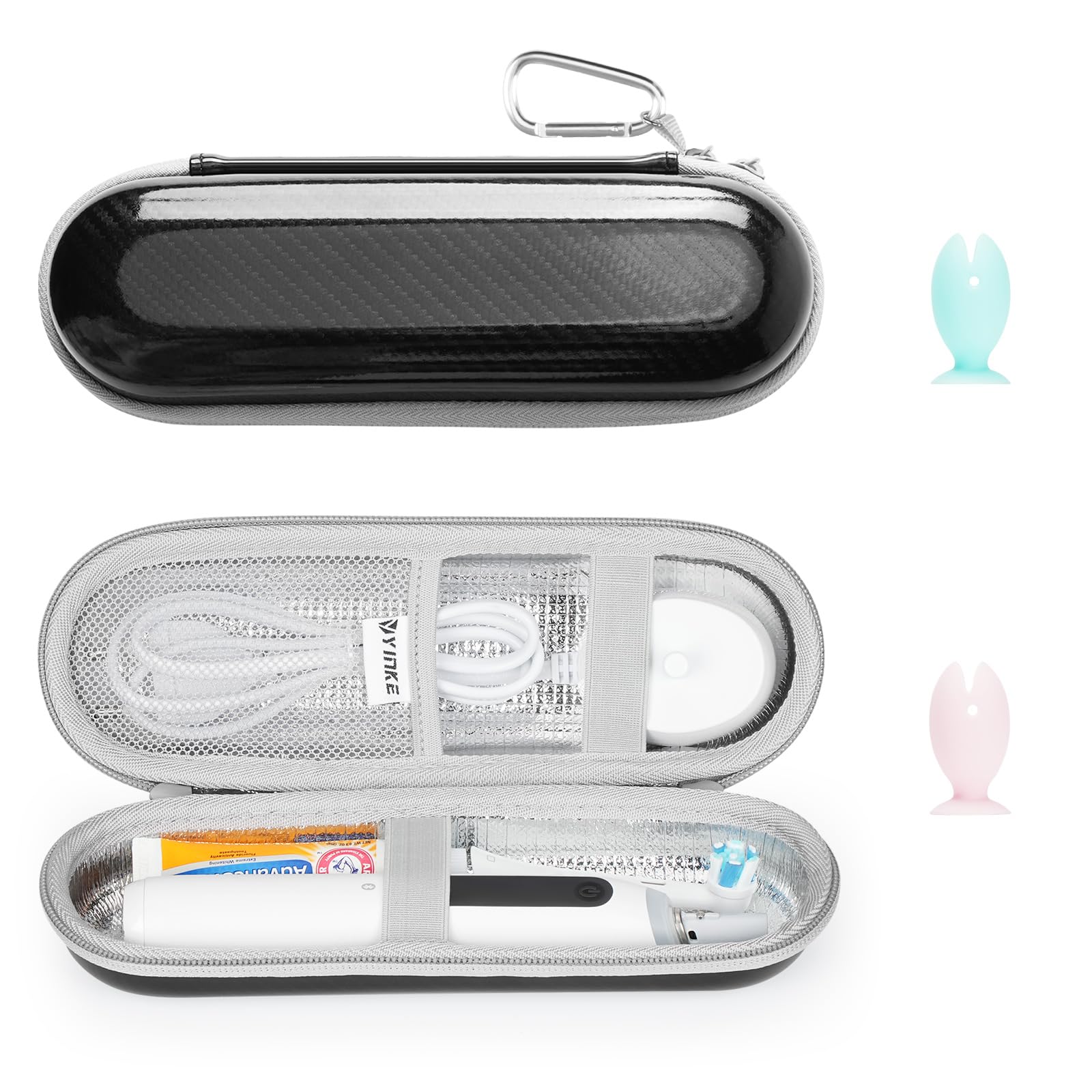 The perfect gift: for adults and children, available in four chic colors: black, rose gold, blue and purple.The perfect gift for children's day, Christmas and various other holidays.in good order: it holds an electric toothbrush, a toothbrush charger, two toothbrush protection and a travel toothpaste, so that it is easy to transport and can be adapted to its various usage scenarios.To carry in a stable: with a stable, non -slip carabiner that does not break down or falls down so easily.Double zip design, easy to open.Practical for use on business trips, travel and on vacation.Sound material: The exterior consists of hard PU for the perfect protection of your toothbrush and accessories, and the interior consists of waterproof, odorless tin foil to protect your health.Creative toothbrush protection in fish design consists of durable and environmentally friendly silicone with a fish mouth to protect the toothbrush head and a strong suction cup on the fish tail to place the toothbrush in every position.-suitable models: For brown oral-b smart series professional Series iOS Series for Philips Sonicare Electric toothbrushes and accessories.Note: This product is not suitable for the charger of the Philips Sonicare 9000 series.(Only the toothbrush pocket and toothbrush protection are available, the machine is not included).Das perfekte Geschenk: für Erwachsene und Kinder, erhältlich in vier schicken Farben: Schwarz, Roségold, Blau und Lila. Das perfekte Geschenk für den Kindertag, Weihnachten und verschiedene andere Feiertage. In guter Ordnung: Er fasst eine elektrische Zahnbürste, ein Zahnbürstenladegerät, zwei Zahnbürstenschützer und eine Reisezahnpasta, so dass er leicht zu transportieren ist und sich an Ihre verschiedenen Nutzungsszenarien anpassen lässt. Einfach zu tragen: Mit einem stabilen, rutschfesten karabiner, der nicht so leicht abbricht oder herunterfällt. doppeltes reißverschlussdesign, leicht zu öffnen. praktisch für den einsatz auf geschäftsreisen, reisen und im urlaub. Gesundes Material: Das Äußere besteht aus hartem PU zum perfekten Schutz Ihrer Zahnbürste und des Zubehörs, und das Innere besteht aus wasserdichter, geruchloser Zinnfolie zum Schutz Ihrer Gesundheit. Der kreative Zahnbürstenschutz im Fischdesign besteht aus langlebigem und umweltfreundlichem Silikon mit einem Fischmaul zum Schutz des Zahnbürstenkopfes und einem starken Saugnapf am Fischschwanz, um die Zahnbürste in jeder Position zu platzieren. Geeignete Modelle: Für Braun oral-b smart series professional series ios series für Philips sonicare elektrische zahnbürsten und zubehör. Hinweis: dieses produkt ist nicht für das ladegerät der Philips sonicare 9000 serie geeignet. (nur die zahnbürstentasche und der zahnbürstenschutz sind verfügbar, die maschine ist nicht enthalten).Yinke Reiseetui Zahnbürste Elektrische für Oral-B Pro für Philips Sonicare, mit Saugnapf Zahnbürste Schutzkappe Stilvoll, Langlebig Tolles Geschenk für Feiertage wie Weihnachten und den Kindertag Schwarz 1