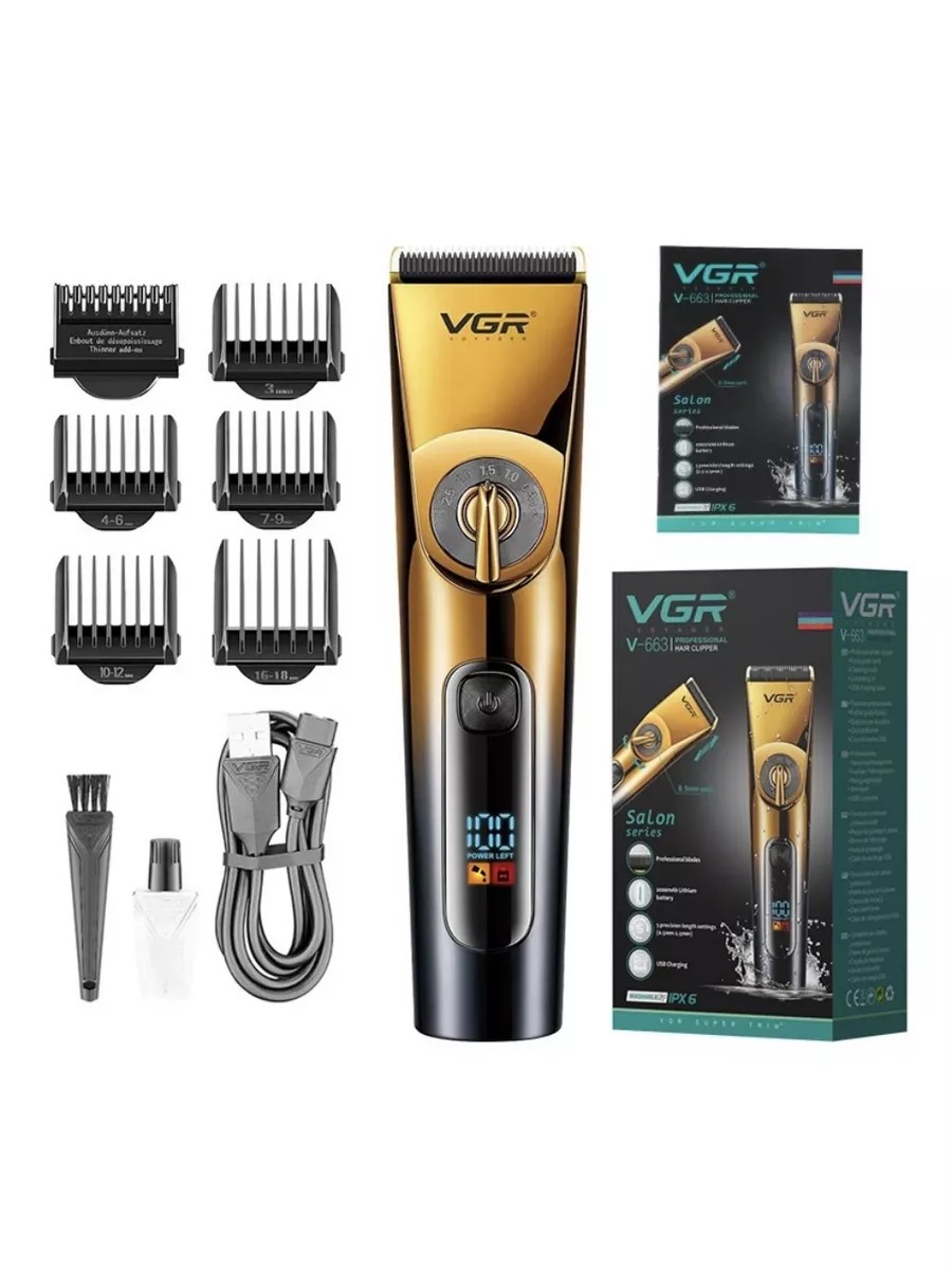 A powerful battery provides up to 180 minutes of cordless operation. This model allows you to cut hair without connecting to a power outlet, which provides maximum freedom and ease of use. No matter where you are - in the salon, at home, or on the go, the VGR V-663 is always ready for use. The VGR V-663 hair clipper is perfection embodied in a convenient and stylish device. This clipper will not only meet your haircutting needs, but also exceed all your expectations. Choose a professional tool, choose the VGR V-663.