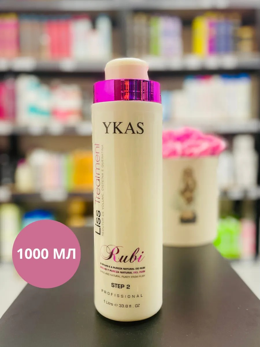 Кератин для выпрямления волос YKAS RUBI LISS 1000 мл профессиональный с органическими маслами – термозащита и уход для идеальной укладки, легкого расчесывания и восстановления окрашенных и кудрявых, осветленных и секущихся поврежденных волос, подходит также блондинкам.