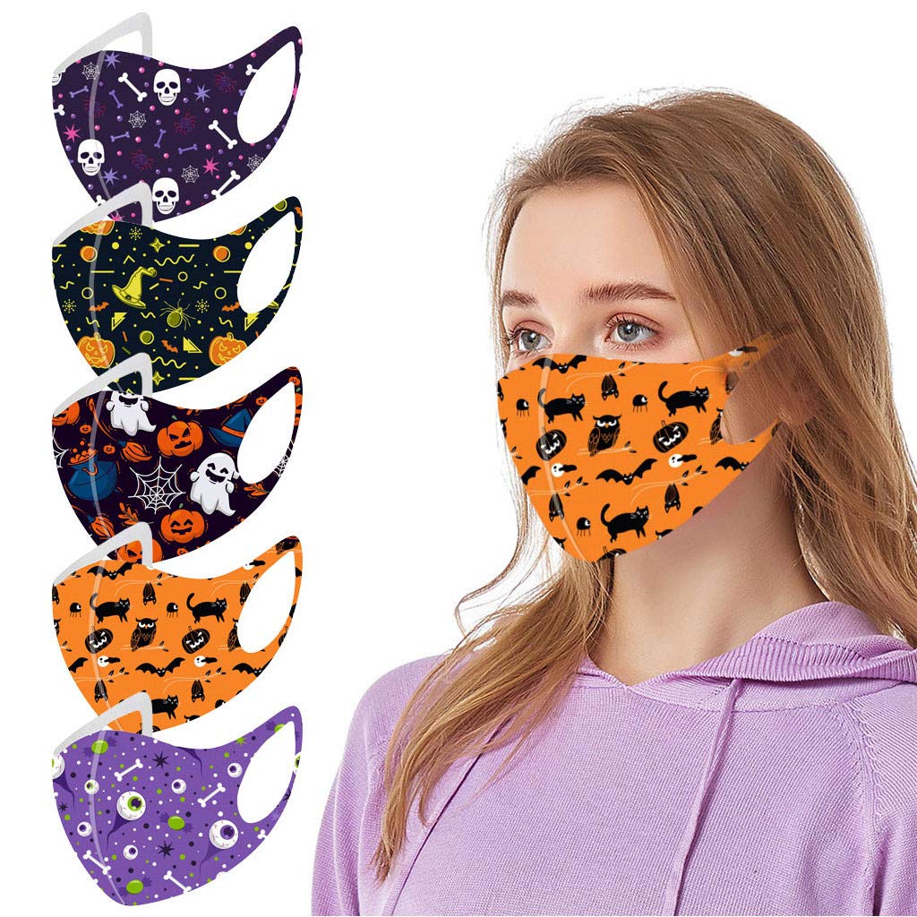 Yliquor 5pc Adult Halloween Mouth Mask for Protection Face and Nose Health Washable Earloop Mask Reusable Washable for Men Women Adults (5 PC B)