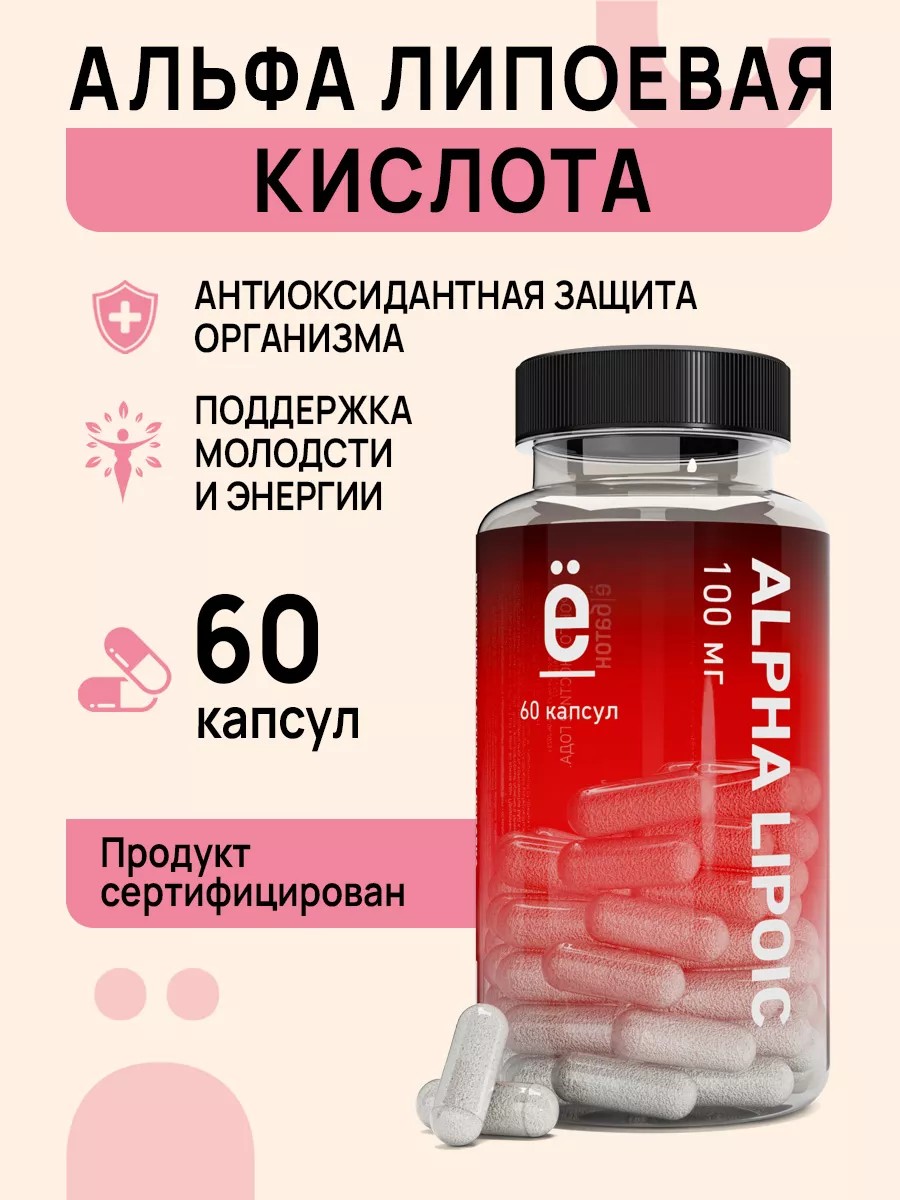 БАД альфа липоевая кислота 100 мг для молодости и энергии