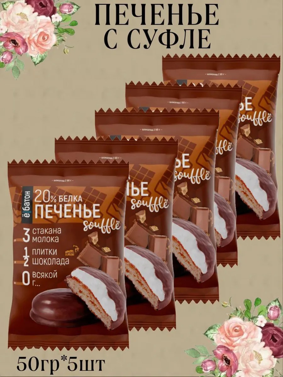 Протеиновое печенье ё/батон с суфле - бесподобный десерт, состоящий из 3х частей. Нежнейшее белковое суфле без сахара, на мягком протеиновом печенье, покрытый шоколадной глазурью. Фитнес-десерт для тренирующихся и ведущих здоровый образ жизни людей. Это не просто протеиновое печенье, это настоящий десерт для тех, кто следит за своим питанием и здоровьем. Наш продукт состоит из высококачественных ингредиентов, таких как белок, витамины и минералы, которые помогут вам получить необходимую энергию и поддерживать ваш организм в отличной форме. Его можно употреблять в перерывах между едой, в качестве быстрого полезного перекуса, как дополнительный источник легкоусвояемых белков.
