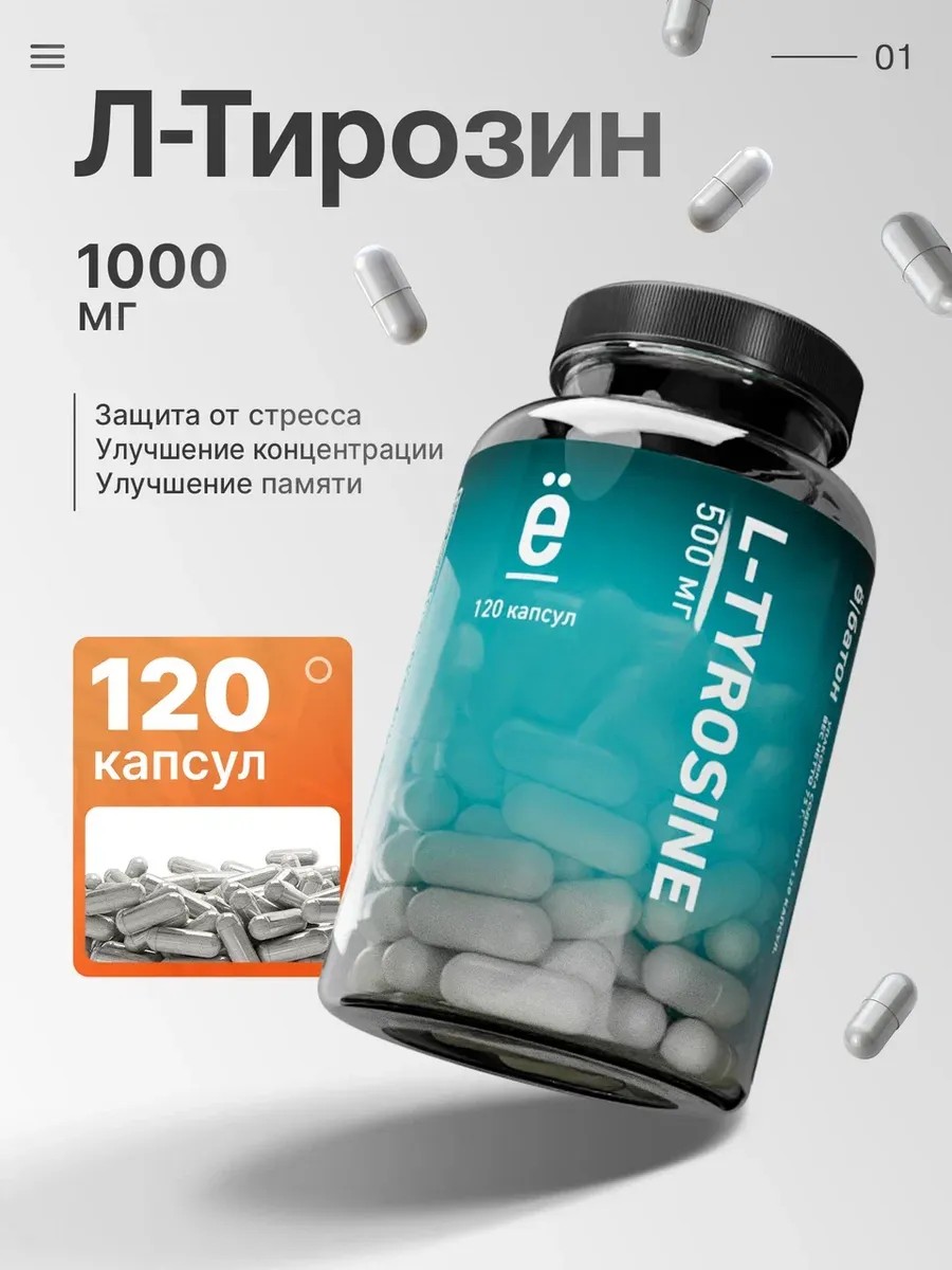 L-TYROSINE - это аминокислота, присутствующая в каждой клетке нашего организма, участвует в синтезе белков и используется для производства ряда нейротрансмиттеров: дофамина, норадреналина и адреналина, необходимых для ощущения жизни во всех ее красках. Достаточный уровень L тирозина повышает сосредоточенность и интеллектуальные способности, улучшает настроение и снижает стресс, снимает усталость и благоприятно влияет на качество сна. Увеличивая уровни гормонов, аминокислота способна уменьшать накопление жира и подавлять чрезмерный аппетит. Рекомендации: Принимайте 1 порцию (2 капсула) 1 раз в день, во время приема пищи или в соответствии с вашей индивидуальной программой питания или рекомендациями врача. Не является лекарственным средством.