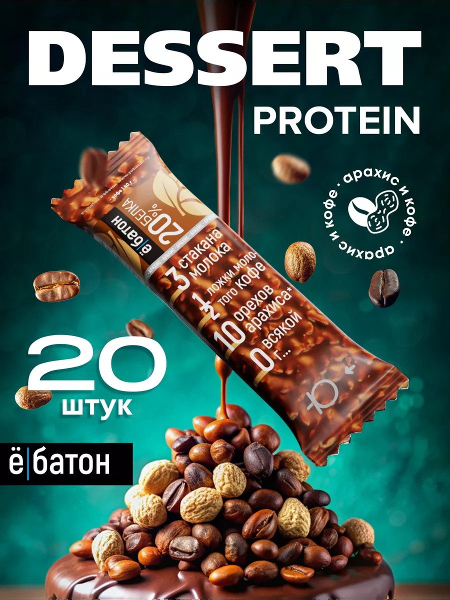Протеиновый батончик без сахара кофе и арахис 20 шт
