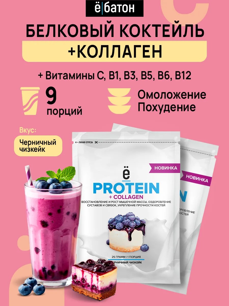 Протеиновый коктейль + Коллаген 25г 9 шт черничный чизкейк