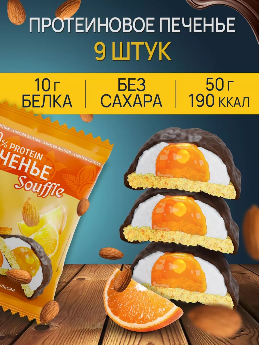 Протеиновое печенье суфле без сахара миндаль-апельсин 9 шт