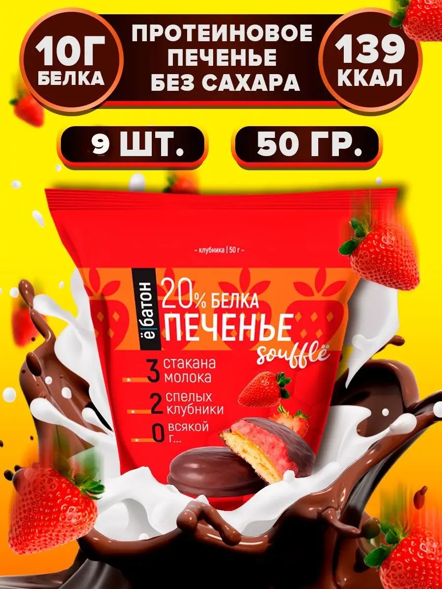 Протеиновое печенье с белковым суфле 20% белка, со вкусом шоколада, 50гр. х 9 шт. Протеиновое печенье ёбатон с суфле бесподобный десерт, состоящий из 3х частей. Нежнейшее белковое суфле без сахара, на мягком протеиновом печенье, покрытый шоколадной глазурью. Фитнес-десерт для тренирующихся и ведущих здоровый образ жизни людей. Рекомендации по употреблению: в перерывах между едой/быстрый полезный перекус, как дополнительный источник легкоусвояемых белков. Противопоказания: индивидуальная непереносимость компонентов продукта