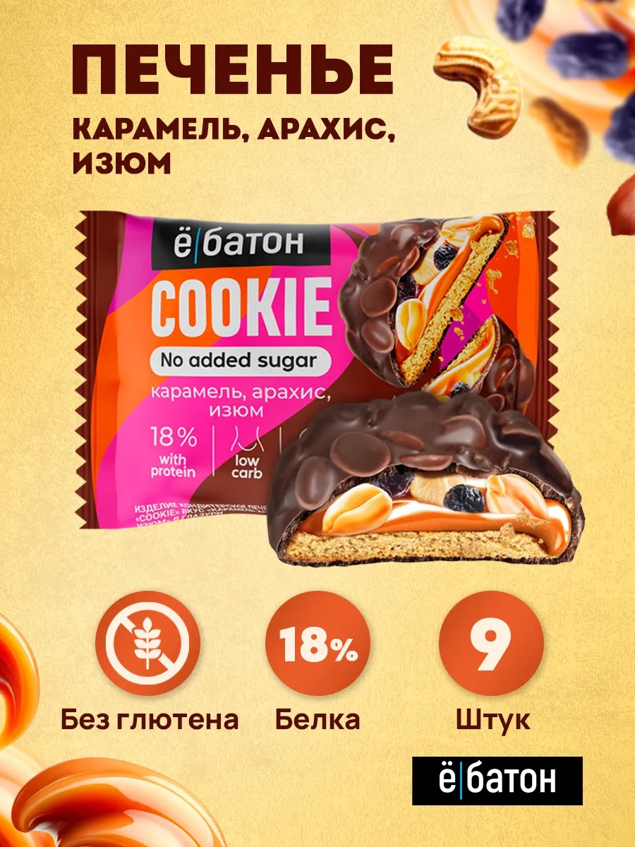 Протеиновое печенье "Ёбатон" со вкусом Карамель-Арахис-Изюм - это идеальный перекус для тех, кто следит за своим здоровьем и фигурой. В каждой упаковке вы найдете 9 вкусных и питательных печенек, которые обеспечат вас энергией и помогут достичь ваших спортивных целей. С высоким содержанием белка (18 г/100 г) и низким содержанием сахара, это печенье станет отличным выбором для тех, кто хочет нарастить мышечную массу, похудеть или просто вести здоровый образ жизни. Удобная упаковка позволяет взять печенье с собой в спортзал, на работу или в дорогу.