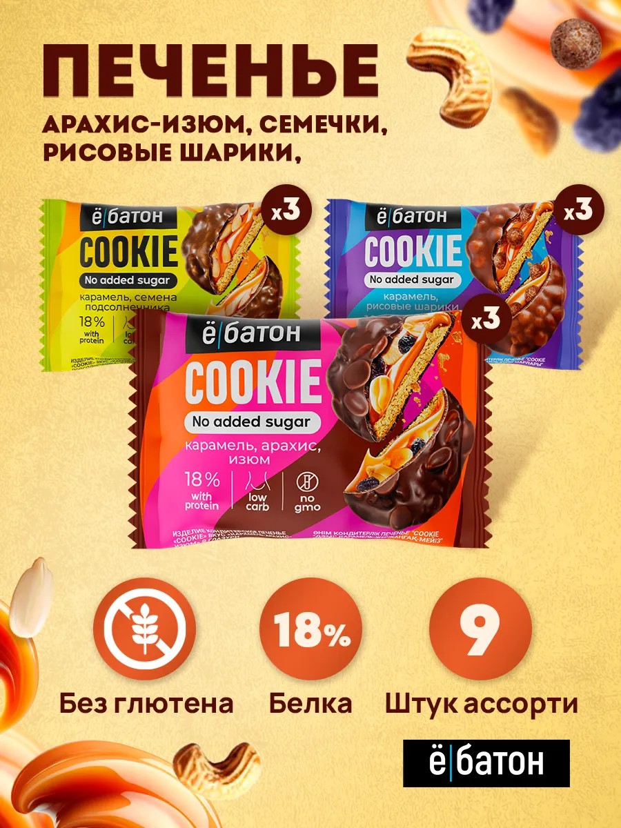 Протеиновое печенье без сахара ассорти 45 гр 9 шт